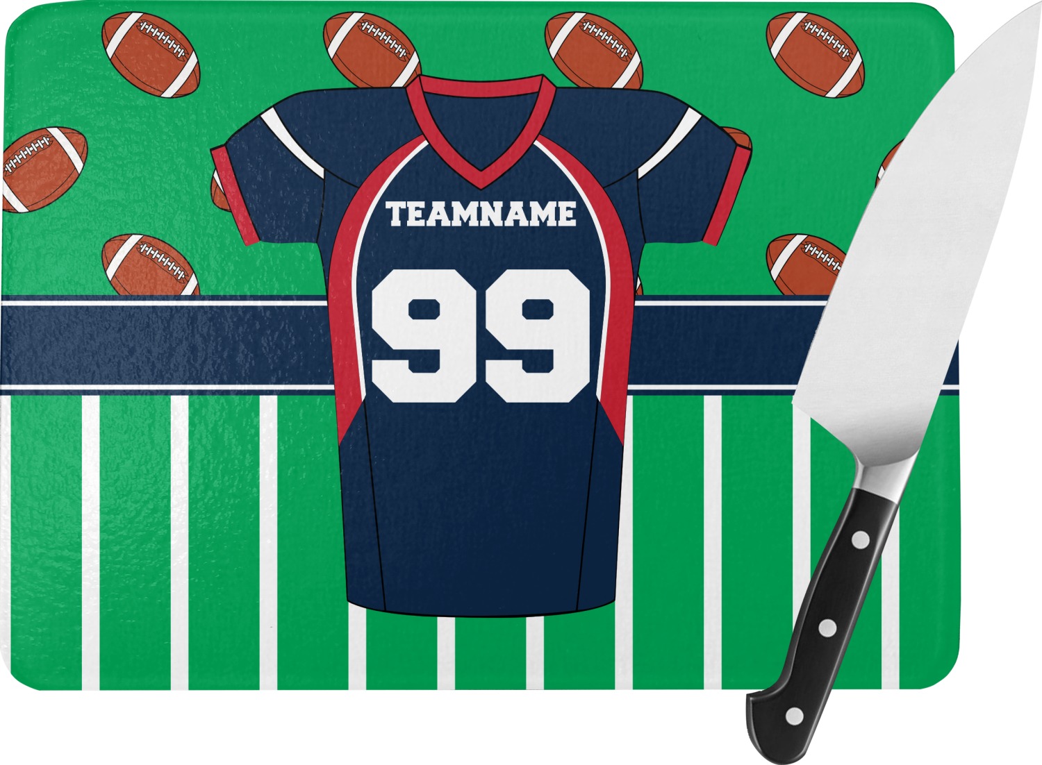 Easily change the navy, white, and blue to your favorite team's colors. The footballs and green field are a fun background pattern, which can be easily changed as well!