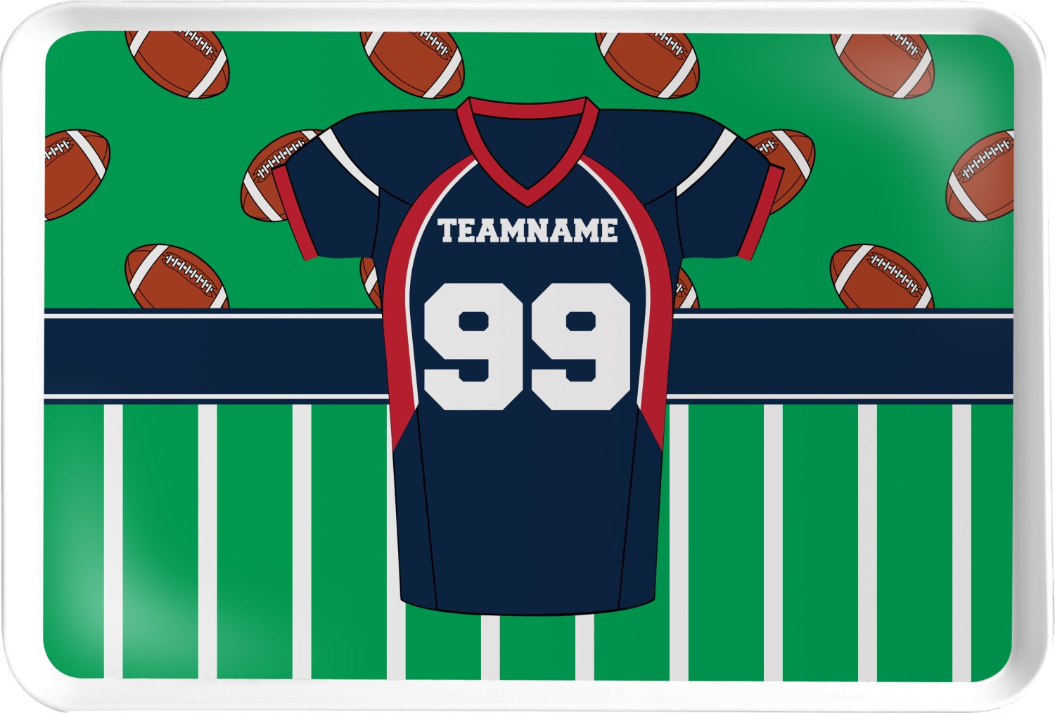 Easily change the navy, white, and blue to your favorite team's colors. The footballs and green field are a fun background pattern, which can be easily changed as well!