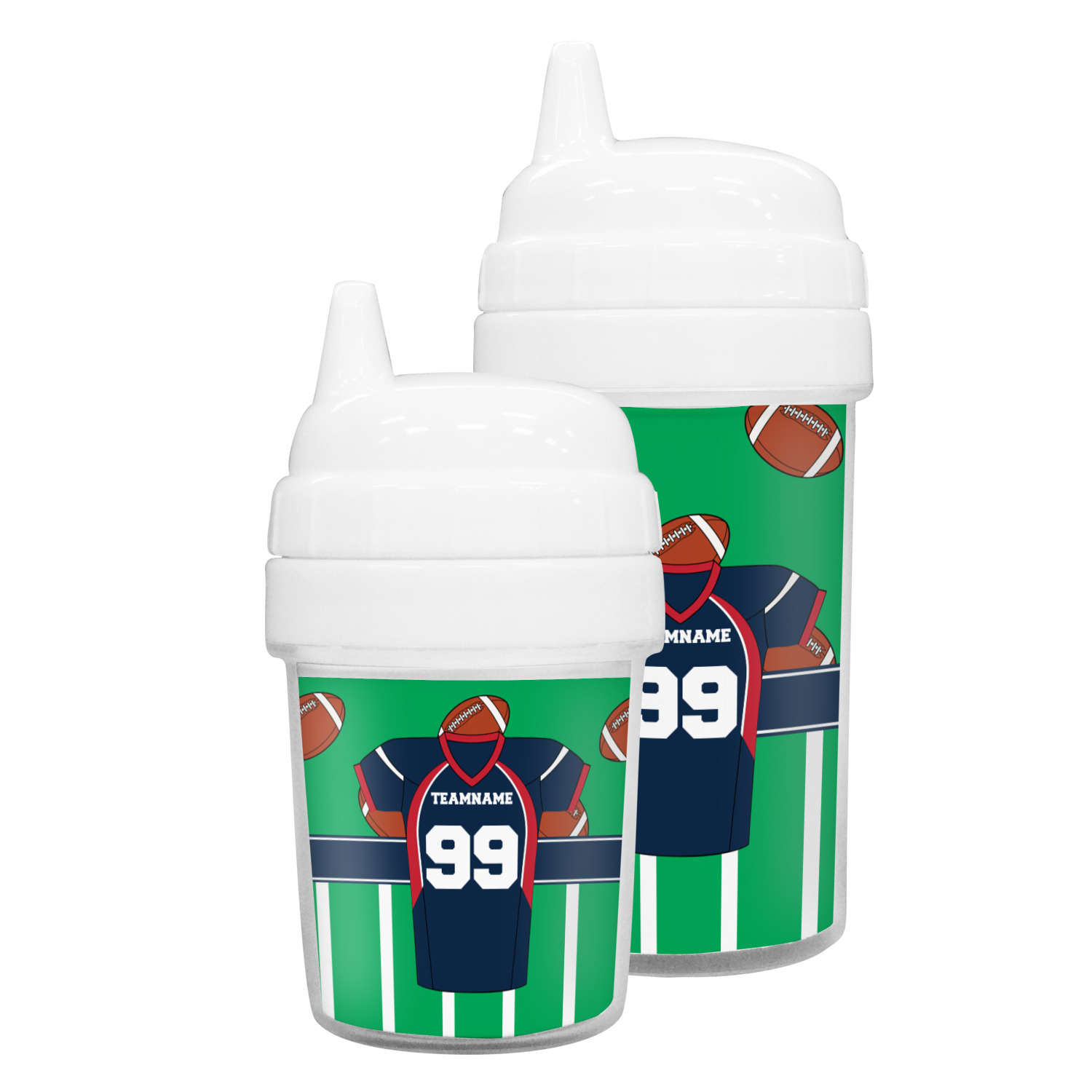 Our toddler cups are free of BPA, and have a twist-open lid so that you can easily fill and clean these cups for your young ones. Each cup also comes with a sippy nozzle to reduce spills. We offer these custom sippy cups in two different sizes; we have a baby sippy cup that holds 5 ounces, and a toddler sippy cup that holds 10 ounces. Your customization is printed on a premium glossy media insert that is placed within these toddler drinking cups.