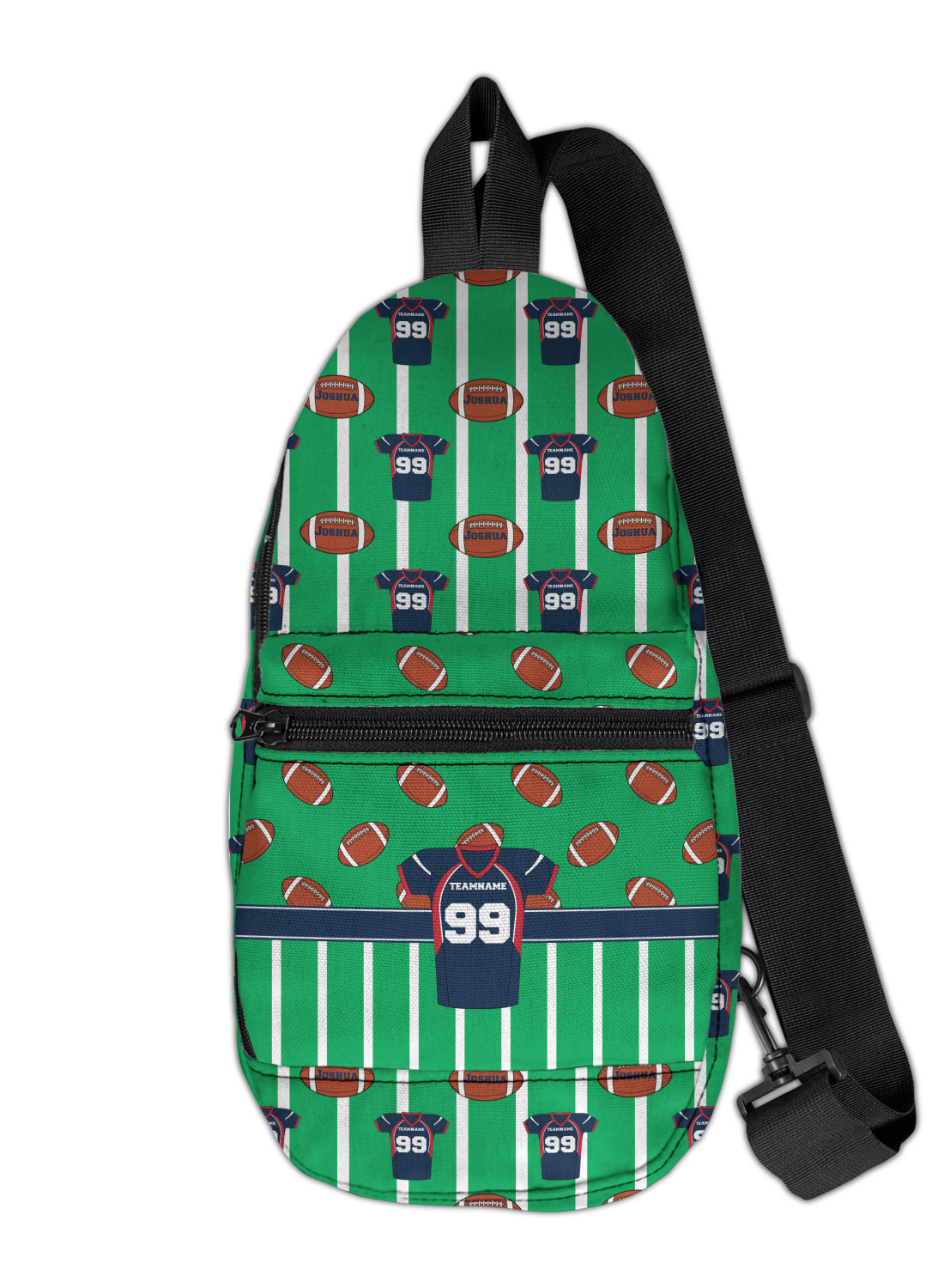 These sling bags are made from a durable polyester canvas. The fabric is printed with your design, then cut and hand sewn right here in the USA.
