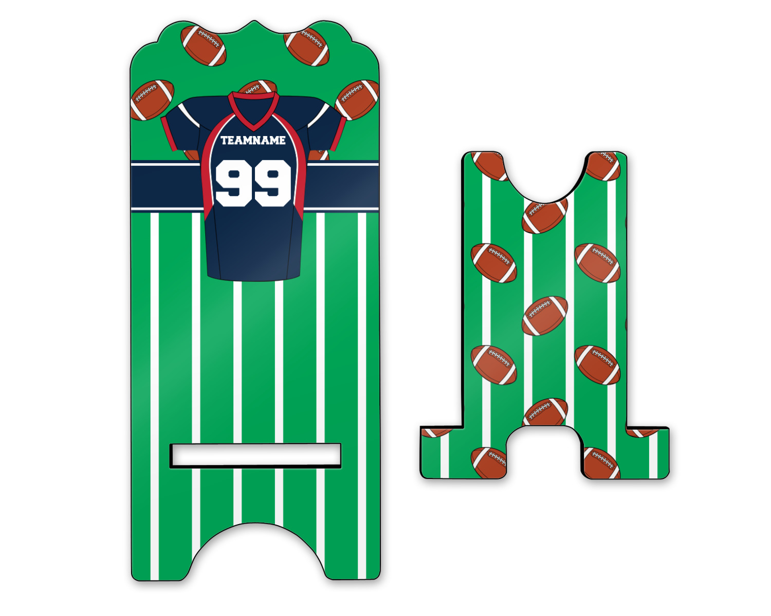 Easily change the navy, white, and blue to your favorite team's colors. The footballs and green field are a fun background pattern, which can be easily changed as well!