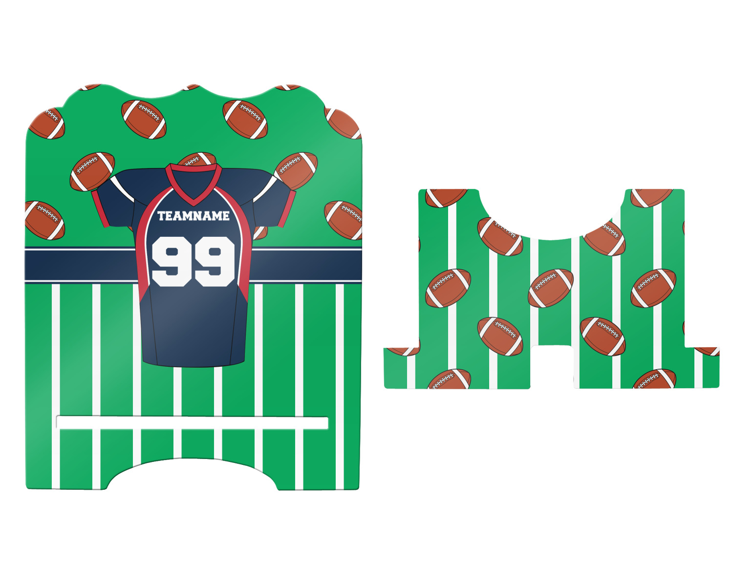 Easily change the navy, white, and blue to your favorite team's colors. The footballs and green field are a fun background pattern, which can be easily changed as well!