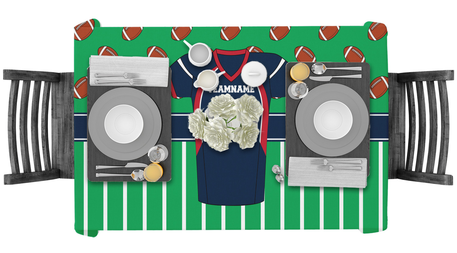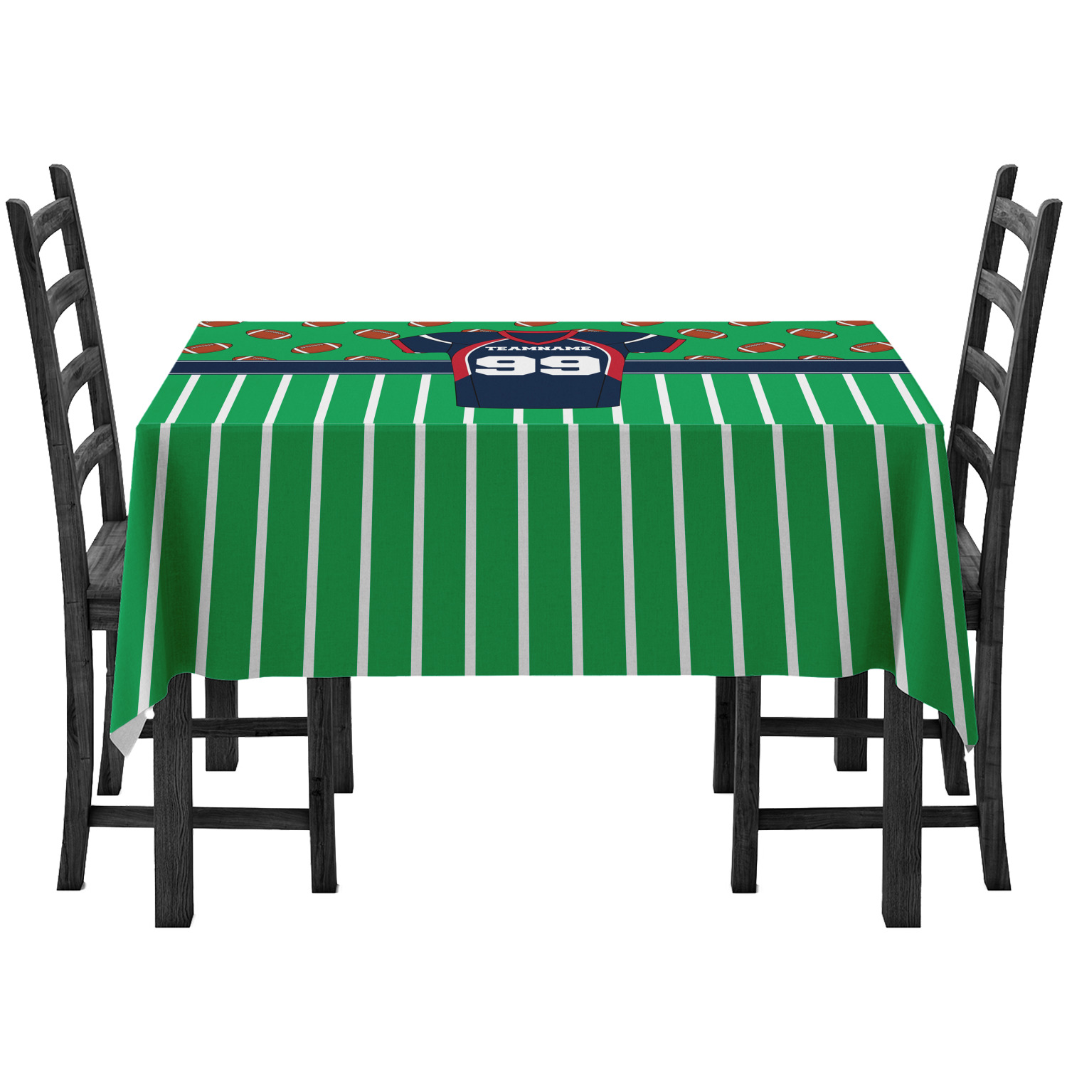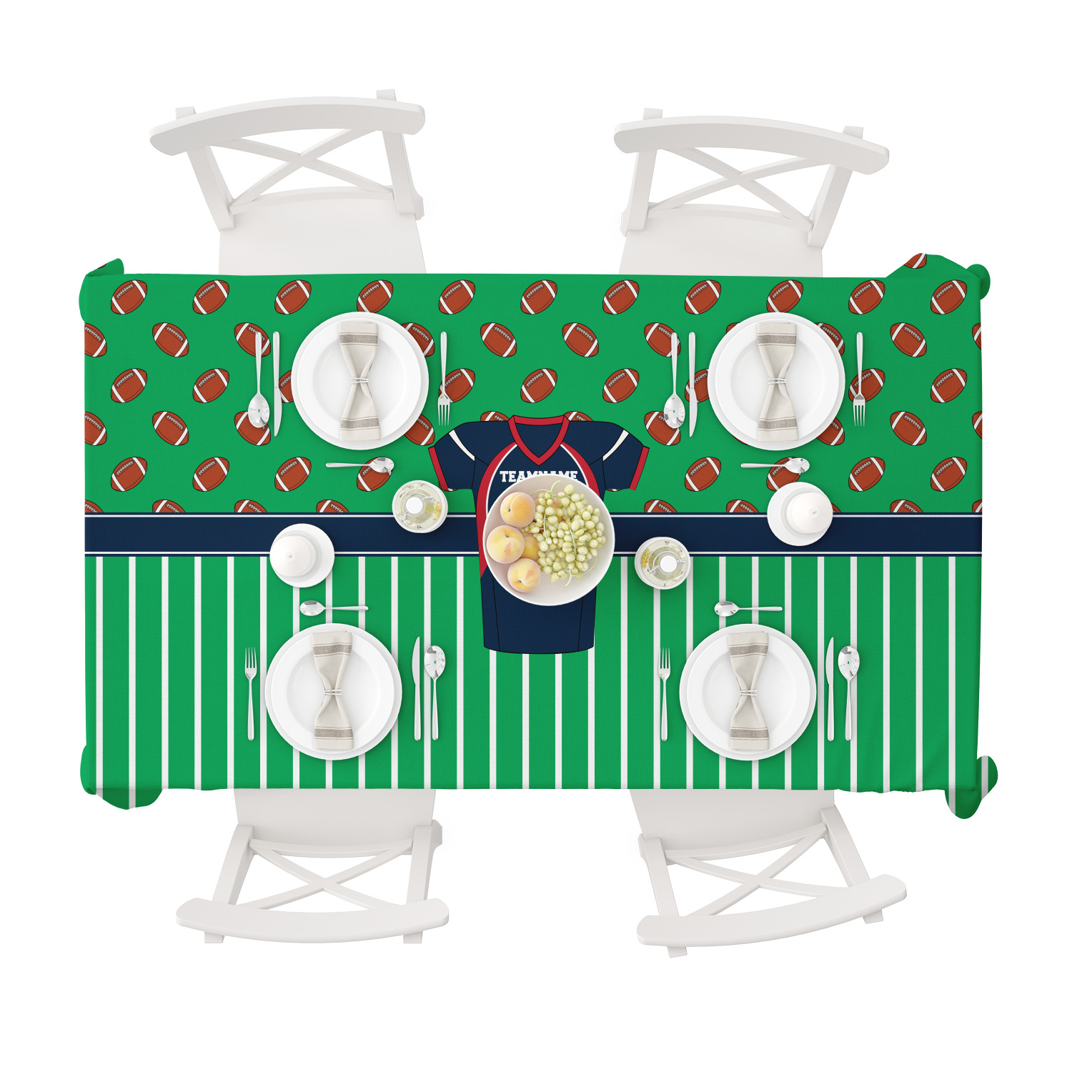 Easily change the navy, white, and blue to your favorite team's colors. The footballs and green field are a fun background pattern, which can be easily changed as well!