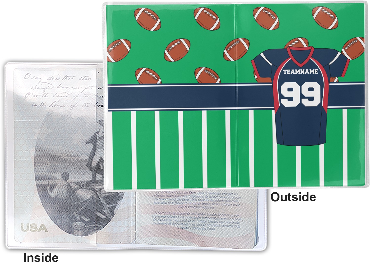 Easily change the navy, white, and blue to your favorite team's colors. The footballs and green field are a fun background pattern, which can be easily changed as well!