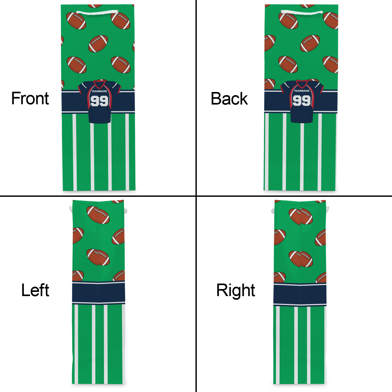 Easily change the navy, white, and blue to your favorite team's colors. The footballs and green field are a fun background pattern, which can be easily changed as well!