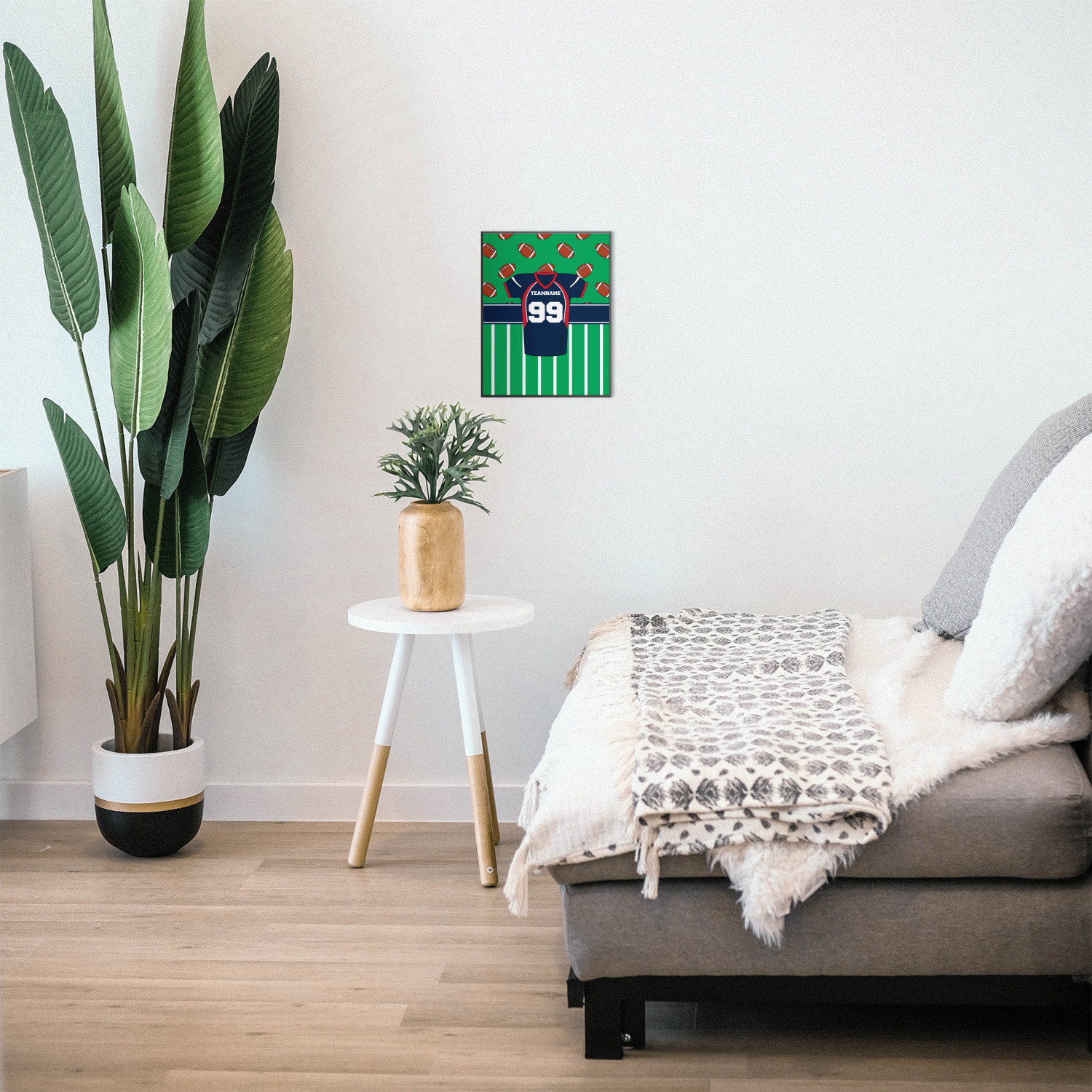 This design is perfect for any guy or gal who loves football. The football jersey is a fun way to personalize this design by putting your name on the back or the front. You can even change the number!