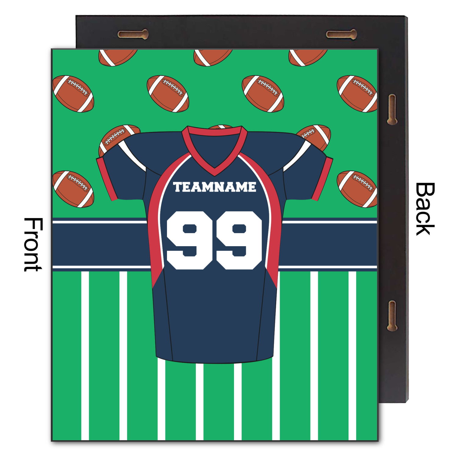 Easily change the navy, white, and blue to your favorite team's colors. The footballs and green field are a fun background pattern, which can be easily changed as well!