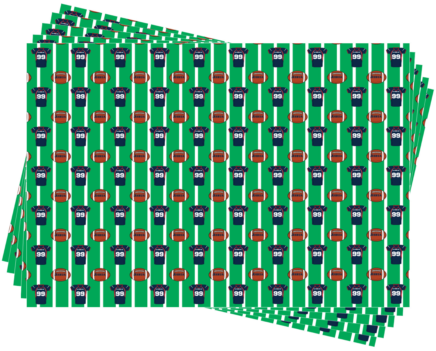 Easily change the navy, white, and blue to your favorite team's colors. The footballs and green field are a fun background pattern, which can be easily changed as well!
