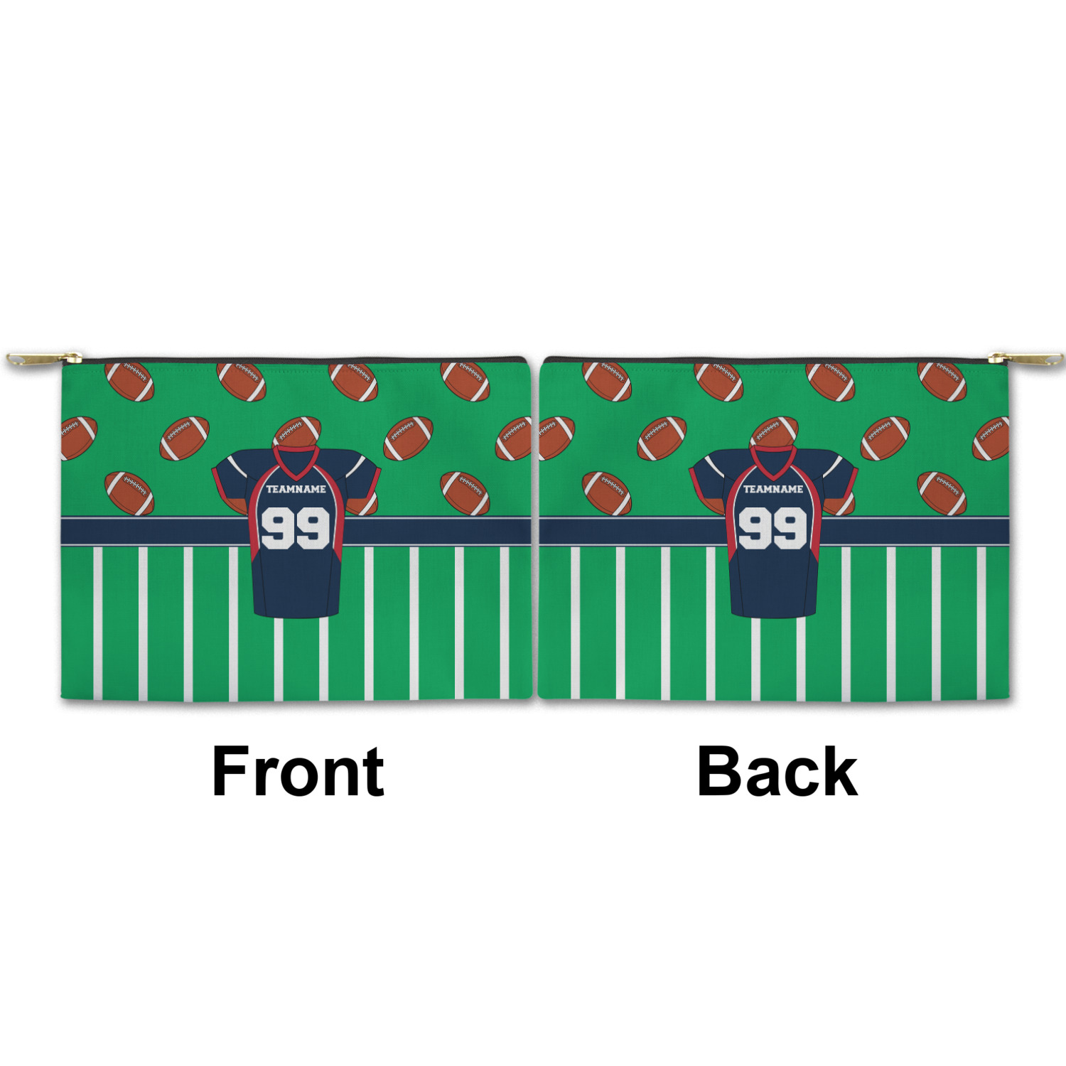 Easily change the navy, white, and blue to your favorite team's colors. The footballs and green field are a fun background pattern, which can be easily changed as well!