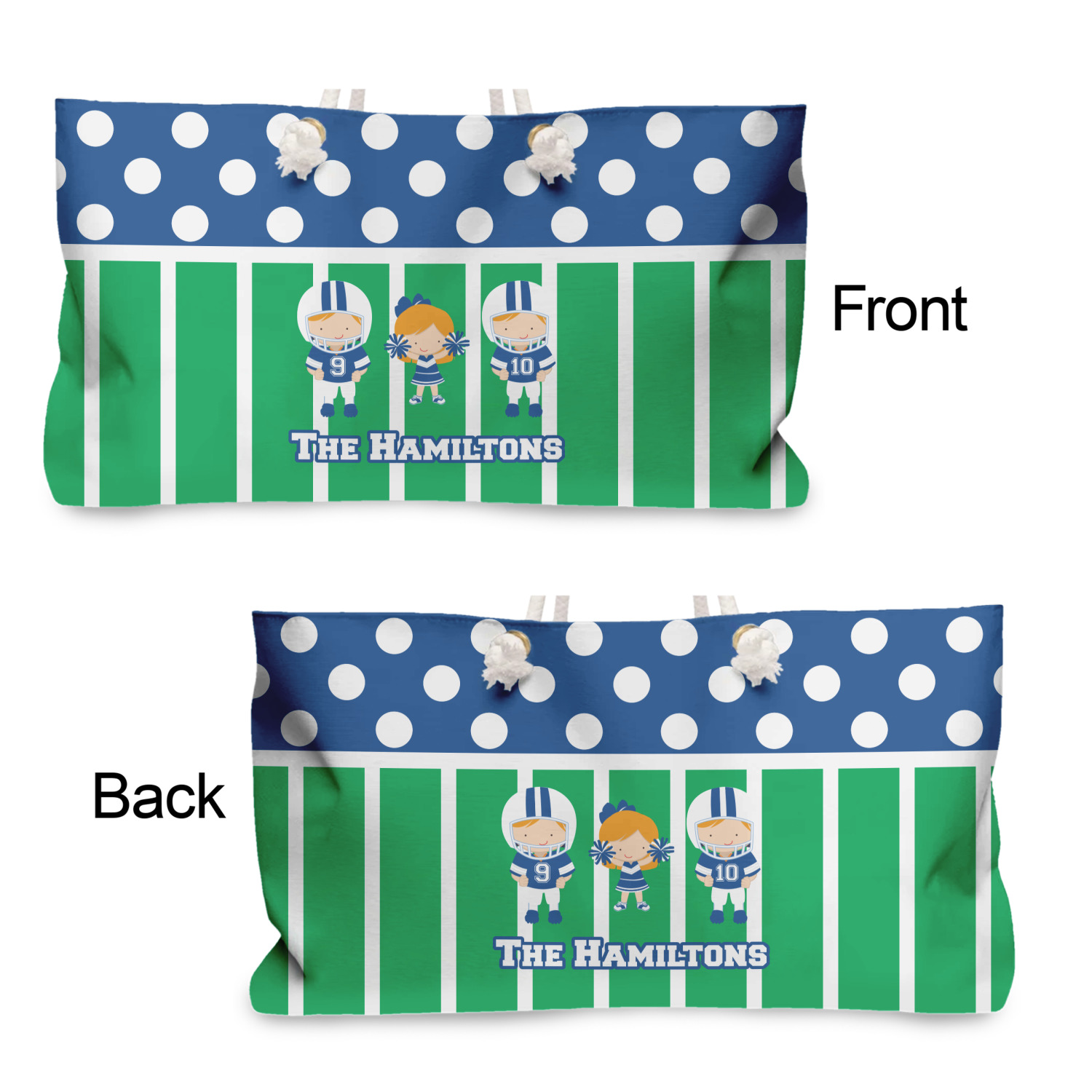 These weekender totes can be customized front and back. The totes are full all over print - so the choice of how background are endless - from beautiful floral or leaf patterns to geometrics or some classic Van Gogh artwork - the possibilities are endless. The totes can also be decorated with photos and logos.