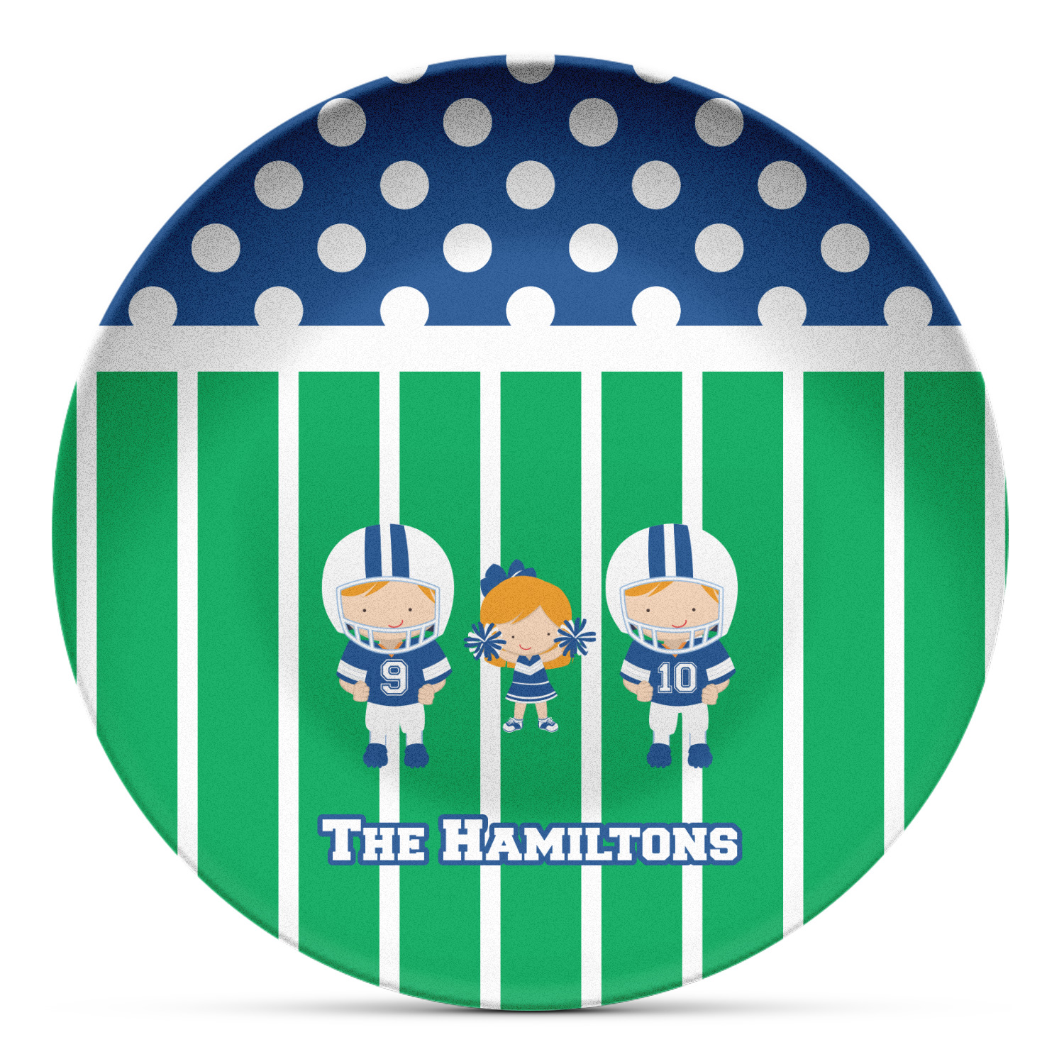 These plastic plates have the versatility, durability, and weight of melamine plates but are instead are made from a melamine-free composite, thermo-set, polymer plastic. These plates are made right here, in the USA, without the use of harmful chemicals, such as BPAs, formaldehyde, or DEHPs. Our elegant plastic plates can even withstand temperatures of up to 250 degrees Fahrenheit, for up to 60 minutes. The entire face of the plate exhibits your personalization in bright, vibrant color, and the plate's diameter measures at 10" long.