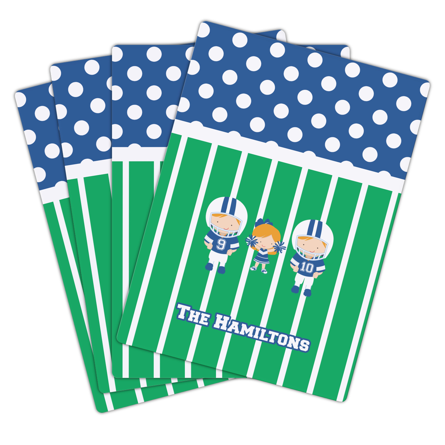 You can further add personalization with not only your family name or children's names but with skin and hair color too AND the football players can have their own numbers.