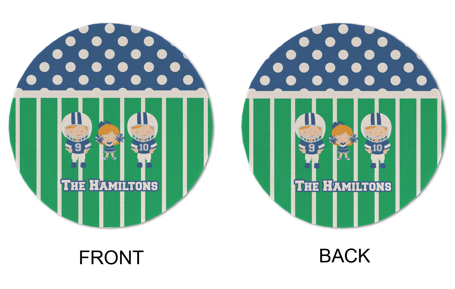 You can further add personalization with not only your family name or children's names but with skin and hair color too AND the football players can have their own numbers.