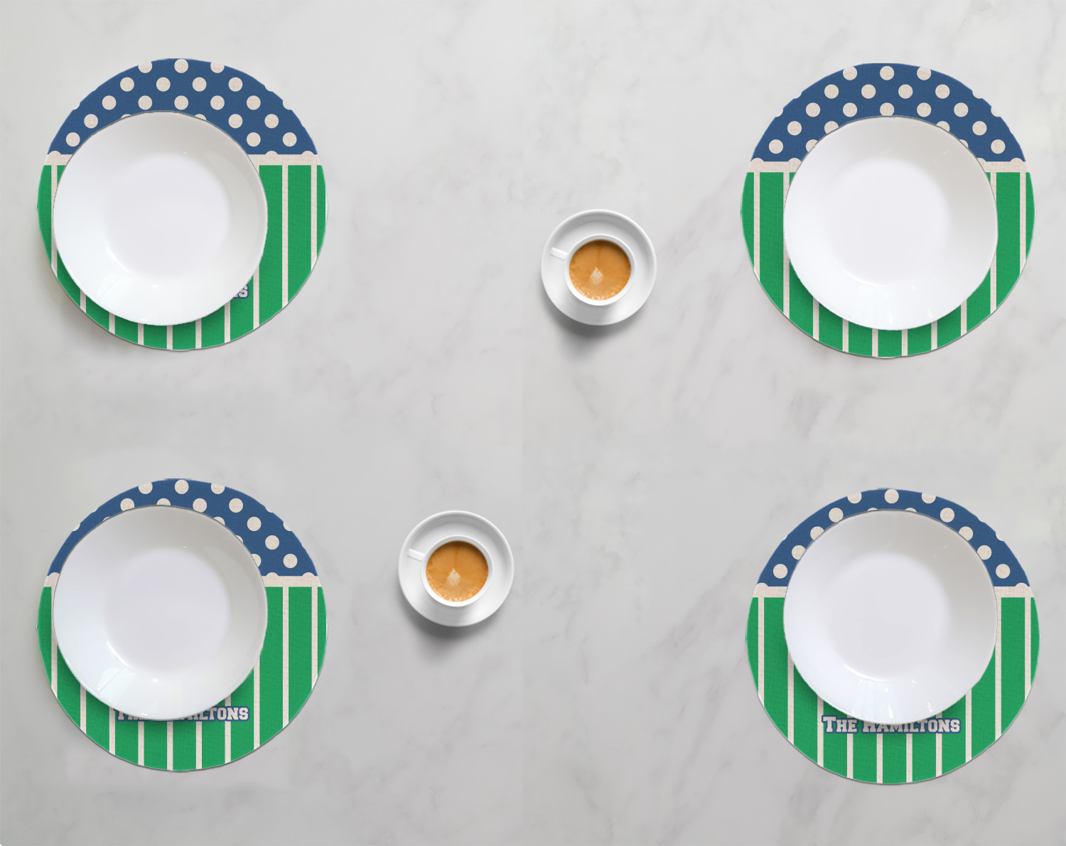 What a great way to showcase your kids and the love of football. A fun polka dot pattern on the top brings fun to the design, while the bottom is the football field. This design is so versatile. Whether you have a football player and a cheerleader, or two football players, or even two cheerleaders and one football player you can mix and match up to three kids.