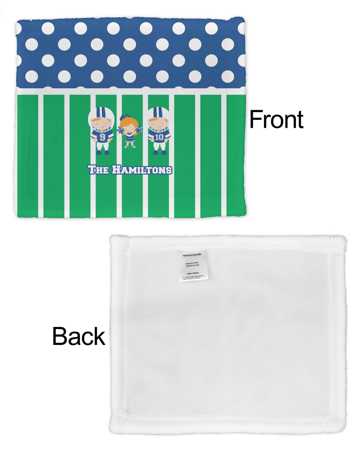 Our customized security AKA lovey blankets are available in 2 print styles - single sided or double sided. You can customize both the front and the back of the lovey security blankets. You have the option to choose different designs or the same design - the choice is yours.