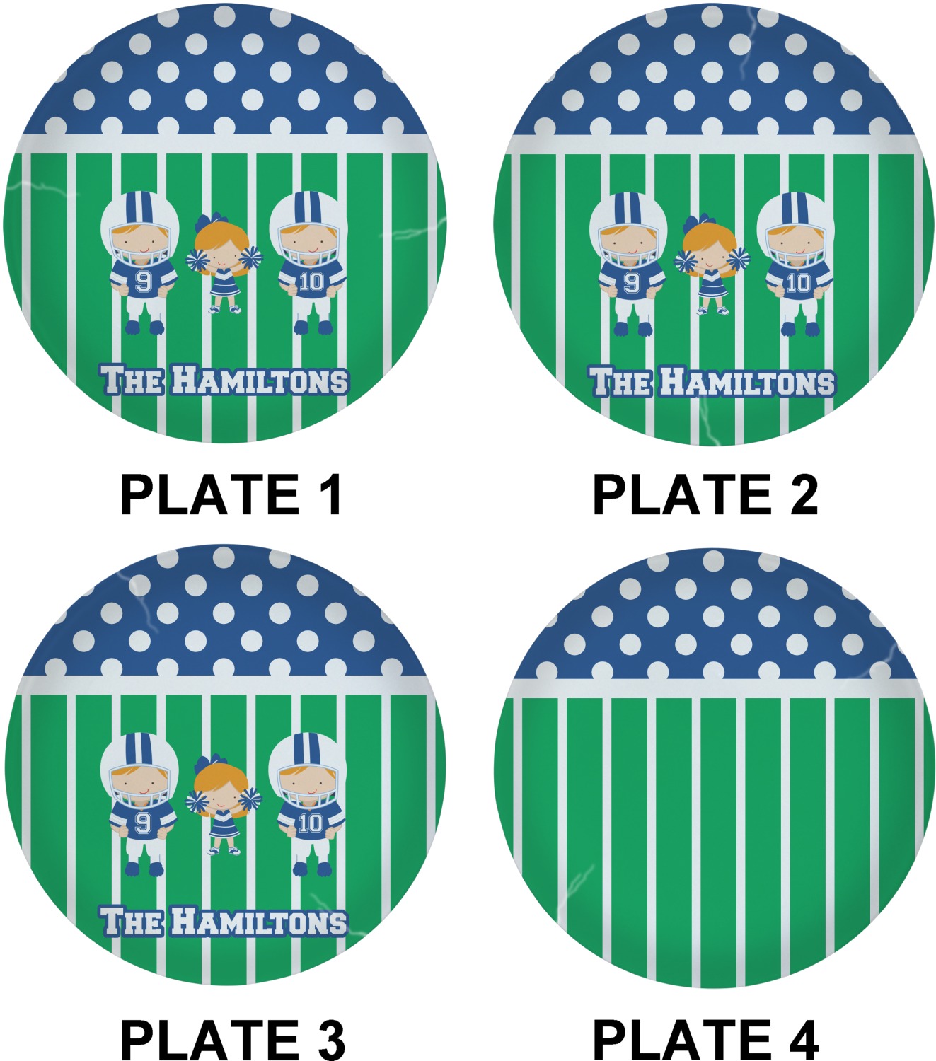 You can further add personalization with not only your family name or children's names but with skin and hair color too AND the football players can have their own numbers.