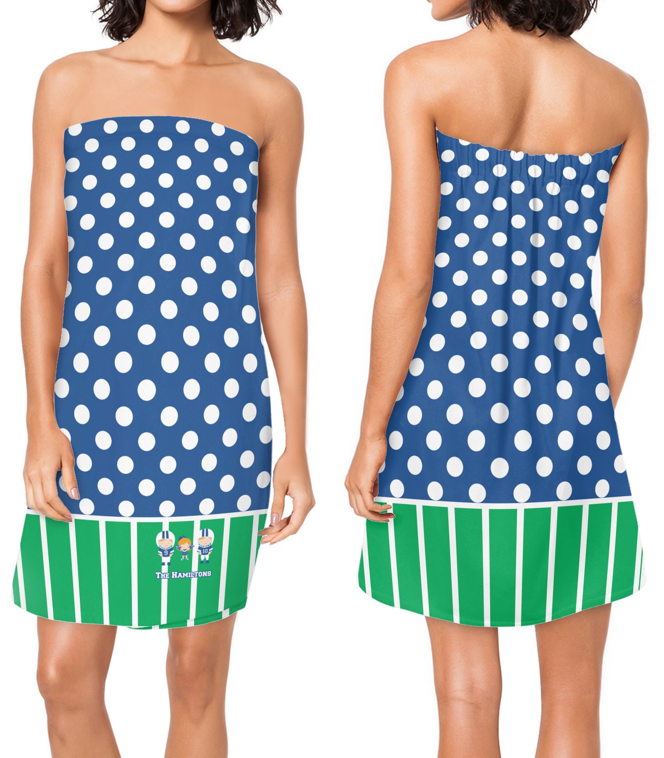 Made from a plush, fleece fabric, these luxurious towel wraps are comfortable and absorbent. They are printed, cut, and sewn for you, right here in the USA, after you place your order. These personalized bath wraps measure at approximately 59 by 32 inches, and display your customization across the outside.