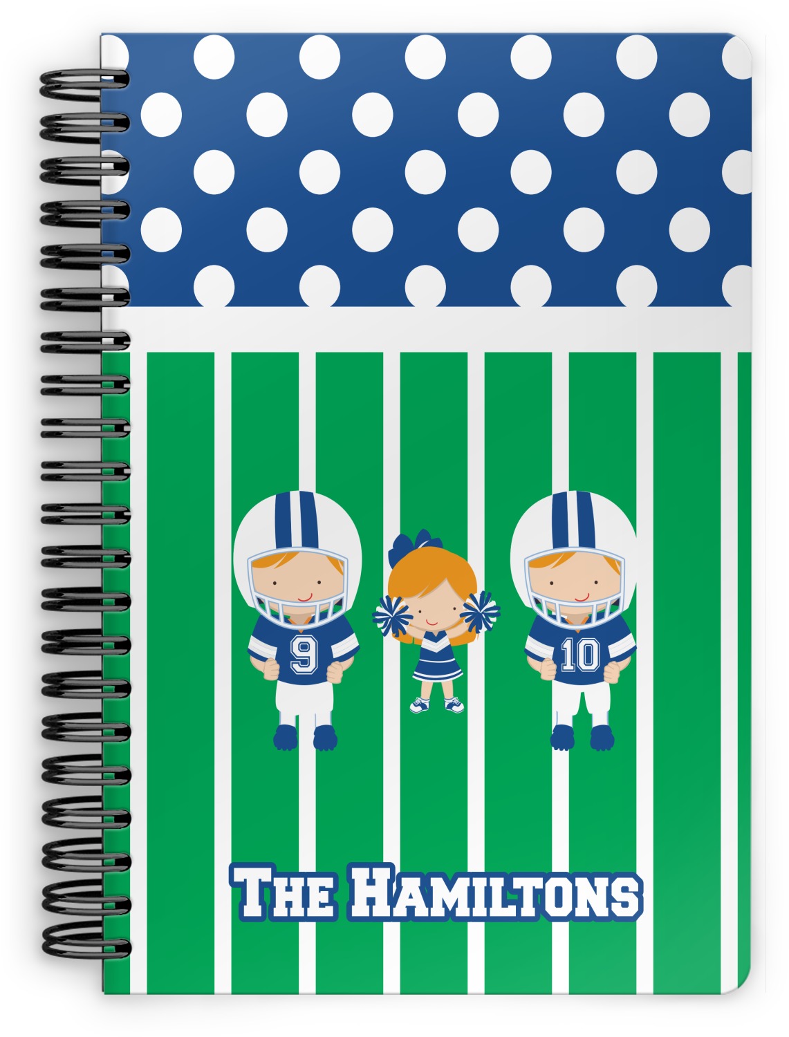 This spiral notebook includes 75 sheets of thick, ruled paper. The front and back of this custom notebook is made of a robust, laminate, plastic covering. We print your personalization on these two panels, underneath a glossy finish, which emphasizes the colors of your design. The two panels and the sheets of paper are held together by a sturdy, black coil. The paper within your bound notebook is perforated for easy, clean tearing.