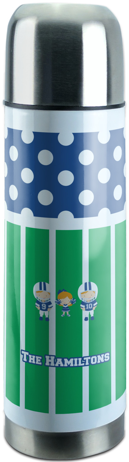 Manufactured from stainless steel, this thermos is built durably and double-walled insulated to preserve the temperature of your drink for hours. It also features a screw off lid that is made to also function as a small cup. Upon unscrewing this part of the thermos bottle, a pop-open, pour feature emerges. This feature allows you to slowly pour your beverage into your lid, ensuring a steady, controlled pour into your lid or other cup. With a capacity of 25 ounces, these large thermoses can hold several servings of your favorite beverage. Your customization is displayed all around the bottle with bright, vibrant color.