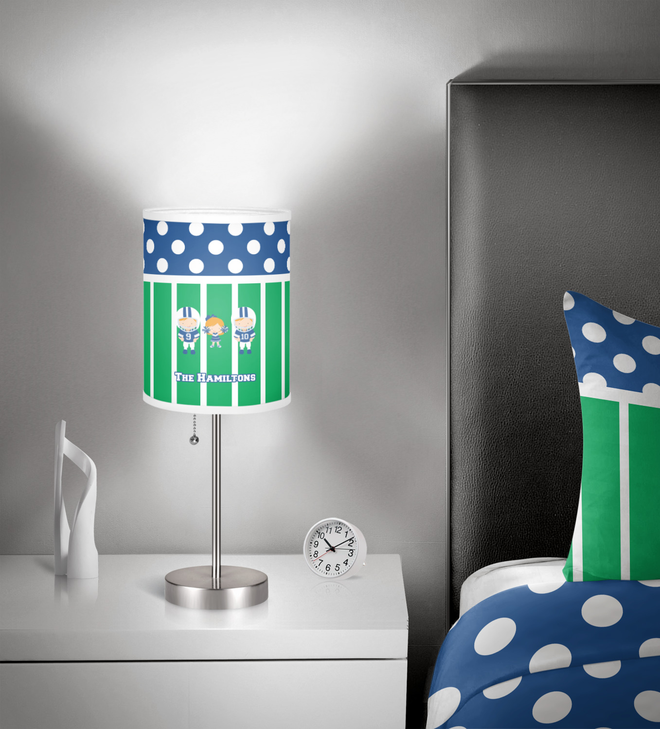 Wait there is more. Love the design, but those aren't your team colors? No problem. You can set your own colors - and not only recolor the background and the dots, but also the kids clothes.