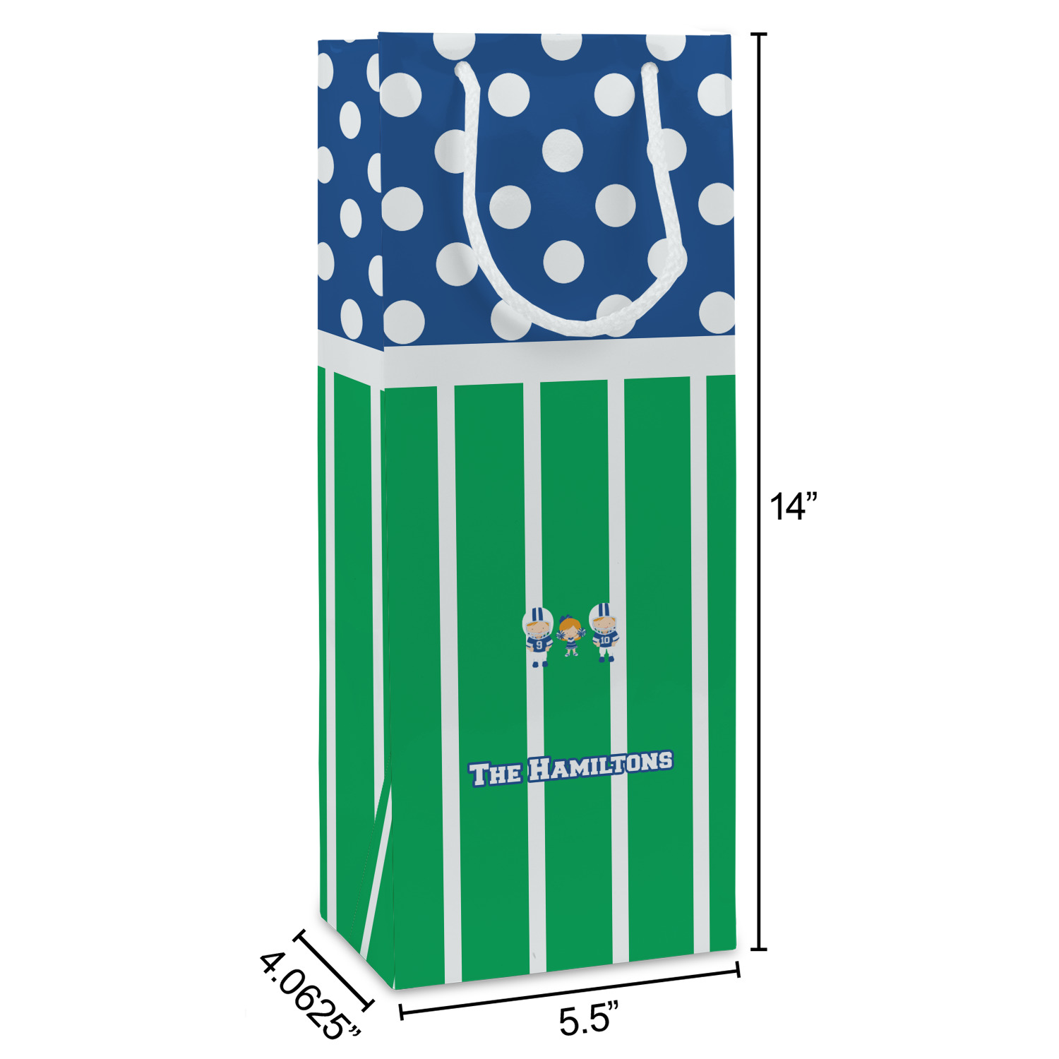 What a great way to showcase your kids and the love of football. A fun polka dot pattern on the top brings fun to the design, while the bottom is the football field. This design is so versatile. Whether you have a football player and a cheerleader, or two football players, or even two cheerleaders and one football player you can mix and match up to three kids.
