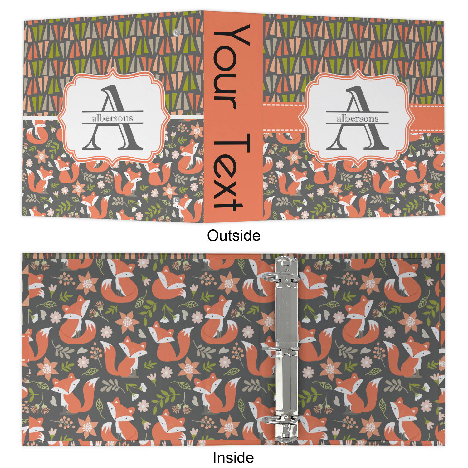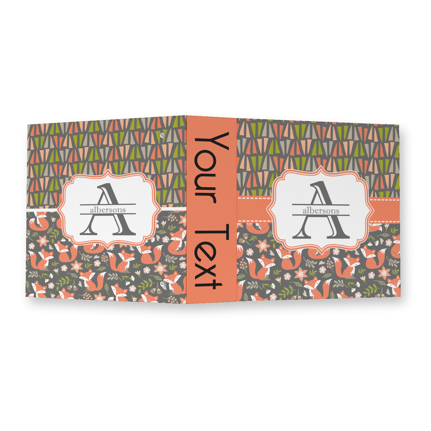 Made from a sturdy cardboard base with a full high quality canvas textured vinyl wrap with the design of your choice. Unlike our standard 3-ring binder with the full wrap design your artwork wraps from the front and back and into the inside of the binder.