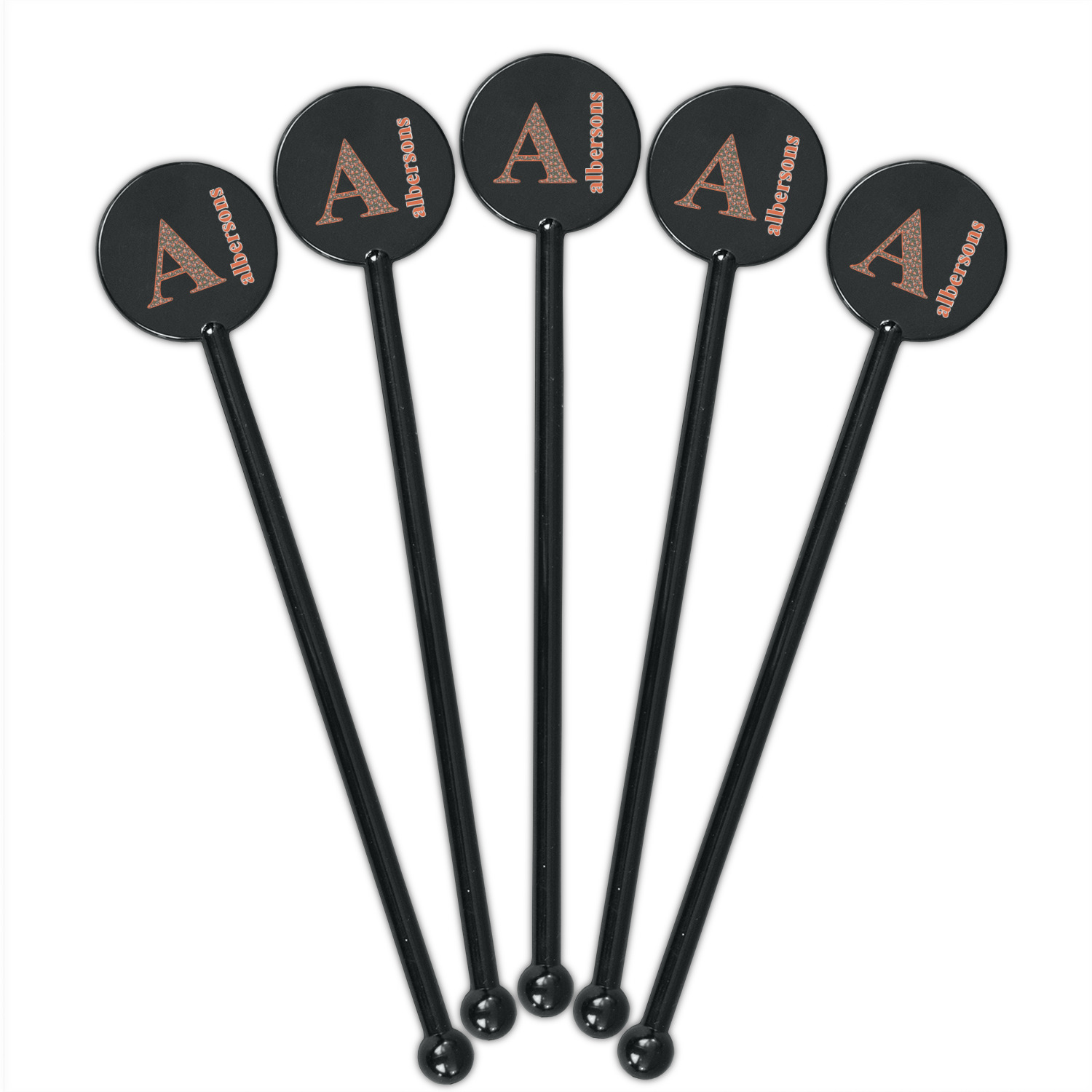 Shape + Symbol Designs for 5.5" Round Plastic Stir Sticks - Black - Single-Sided