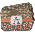 Embrace your inner woodsmen with the Fox Trail Floral design. The bottom of design features an adorable, orange fox surrounded by flowers and leaves on a gray background. On top of the design, there are abstract triangles in orange, green and gray.
