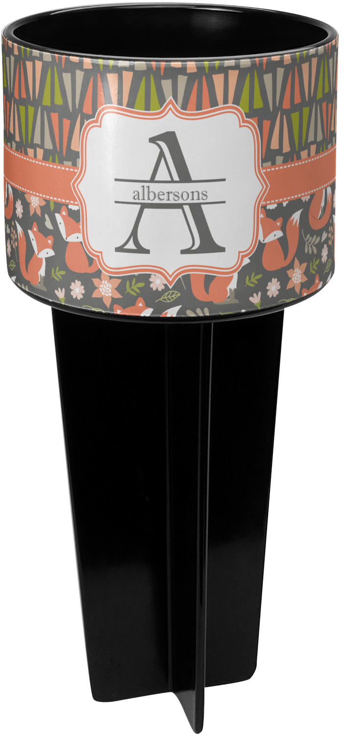 This cup holder has a large stake at its bottom that anchors it to the sand or ground below, while the cup holder rests above the stake. The entire drink holder is made of durable plastic and displays your customization around the cup holder portion. We sell these personalized beach spikers in two different colors: black and white.