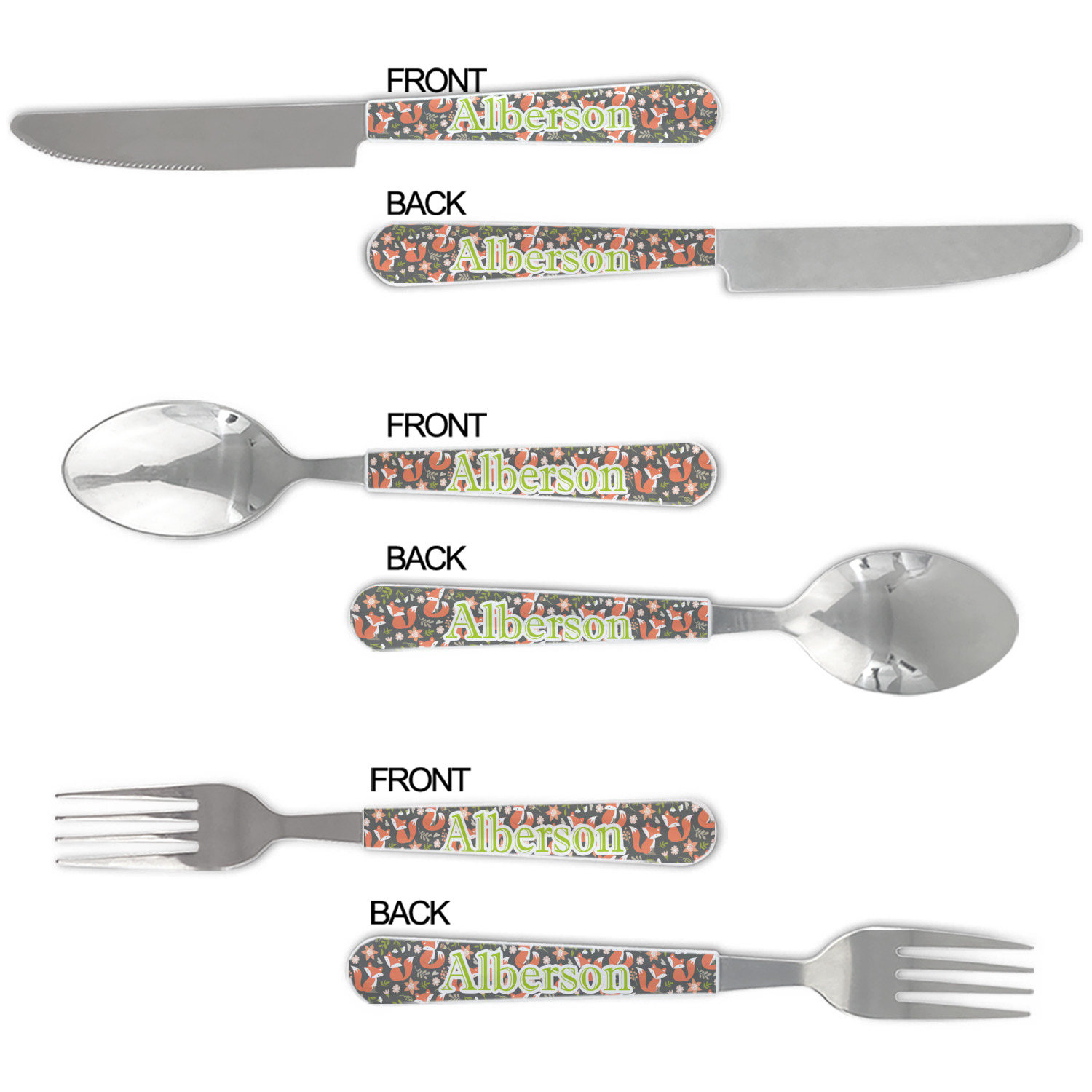 We print your customization on the handles, making these cutlery sets unique to you.