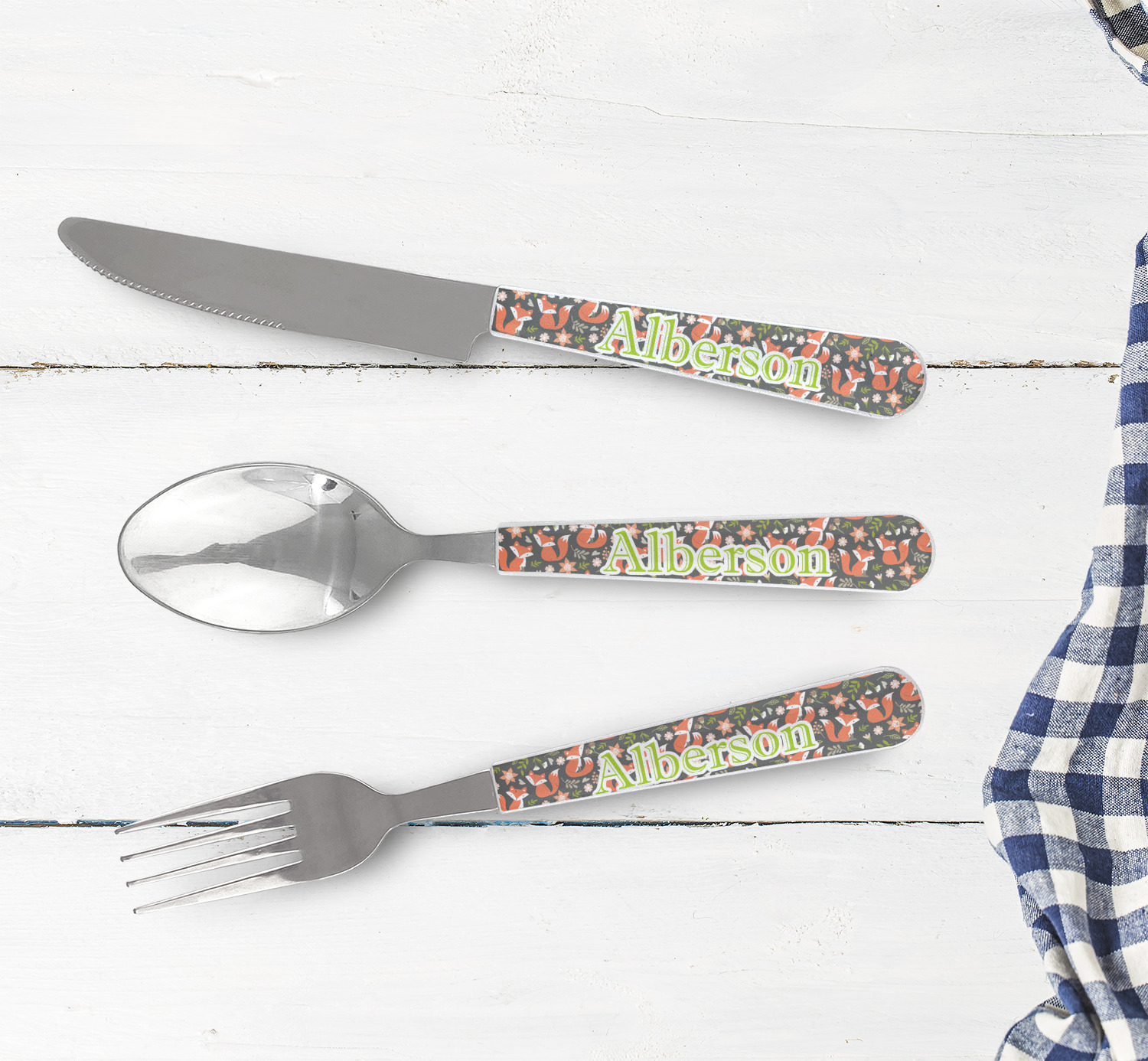One of those items we all use on a daily basis and never give it much thought - cutlery. Having your own customized set of cutlery adds that special touch. A great addition to our custom plates and drinking pint glasses, this flatware set can be made in the same patterns to match.