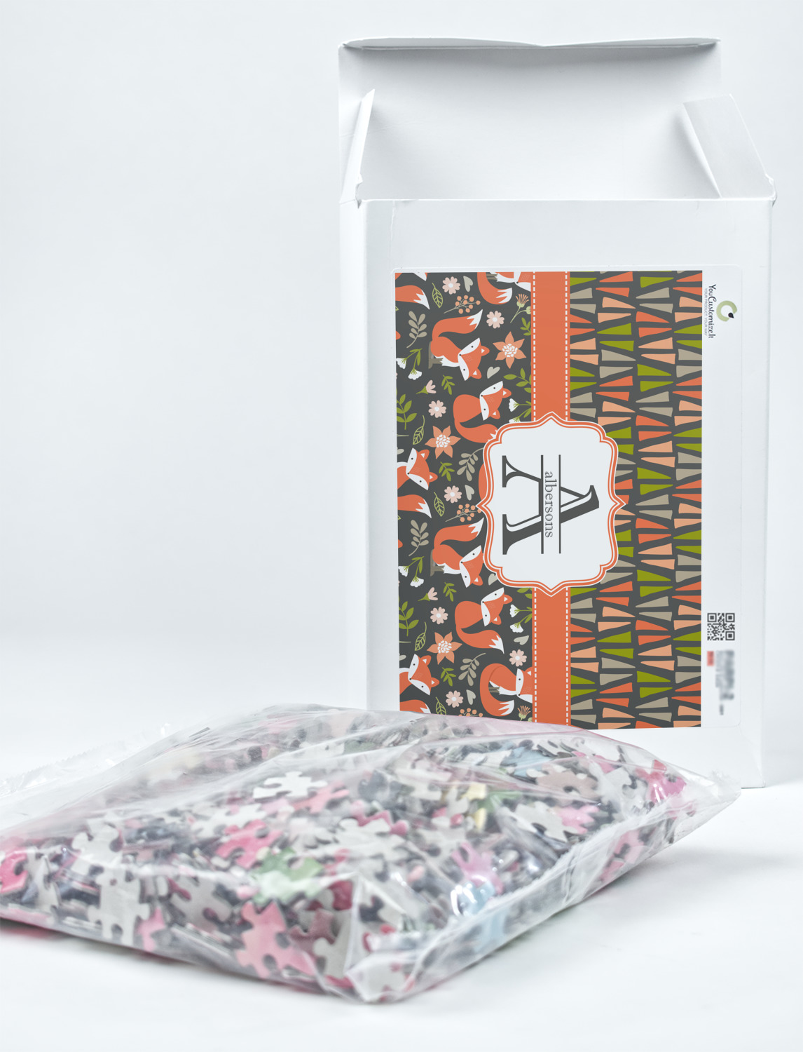 You can also upload your logo or art that you or your kids drew. To create more challenging jigsaw puzzles, you can create a pattern from with your logo or artwork. You can also add other elements such as text or personalization.