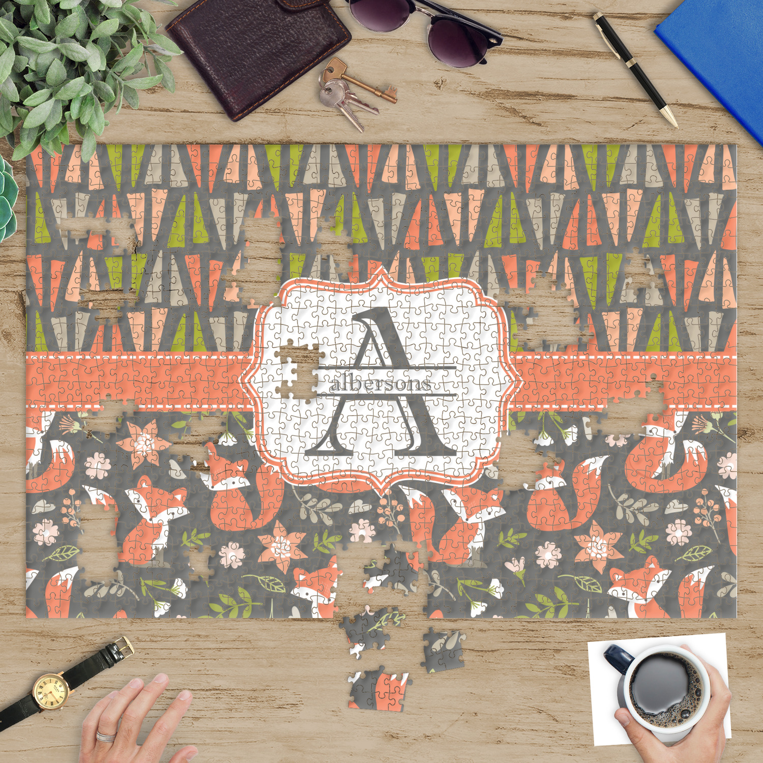 At YouCustomizeIt.com, you get to decide what you want on your puzzle. A scenic picture, a family photo, framed photo, photo with text, artwork, logo, patterns etc. You decide what you want.
