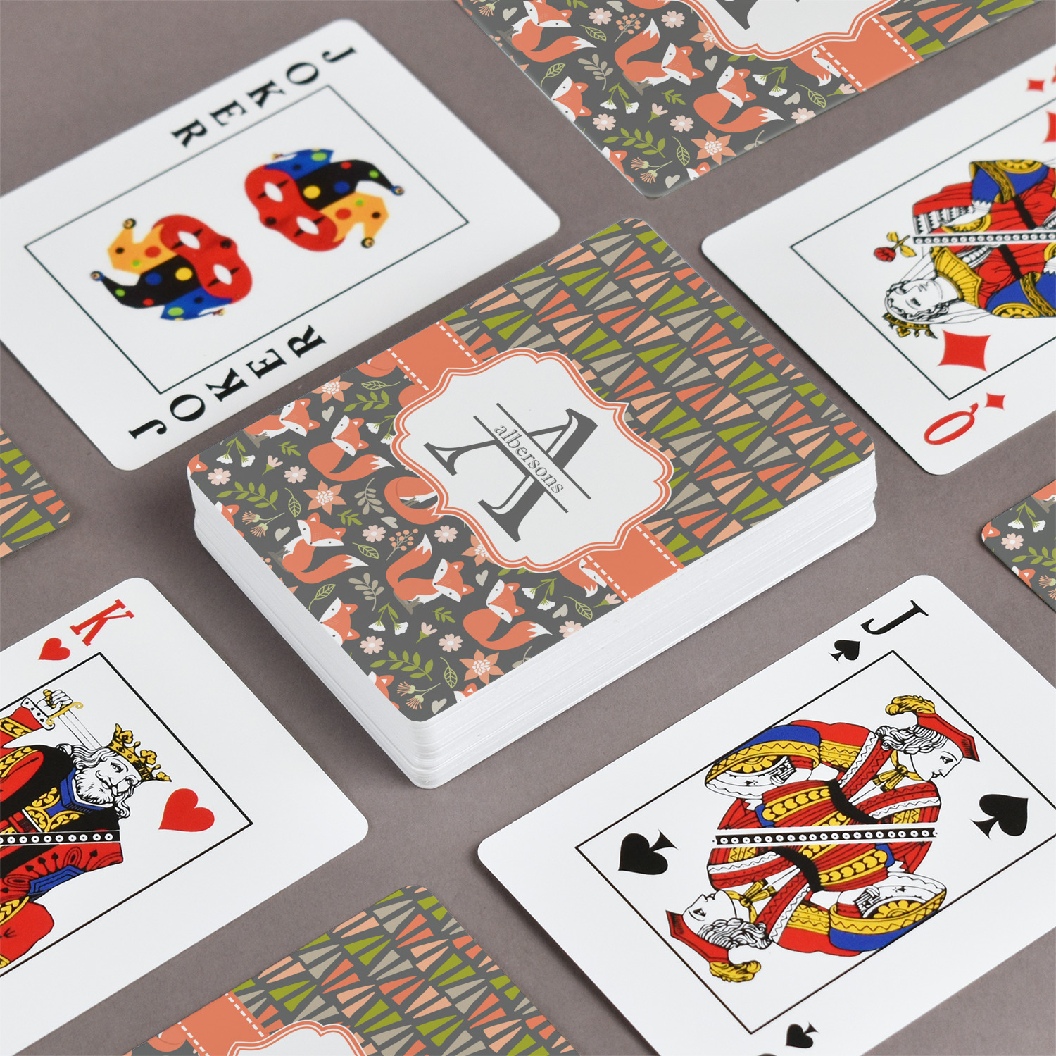 Our playing cards are perfect for family game nights or poker nights. A deck of customized playing cards ups the level of fun & entertainment to your game or poker nights. Imagine playing cards customized to match the theme of your game room, or game night, or that special event, or occasion with gambling tables!