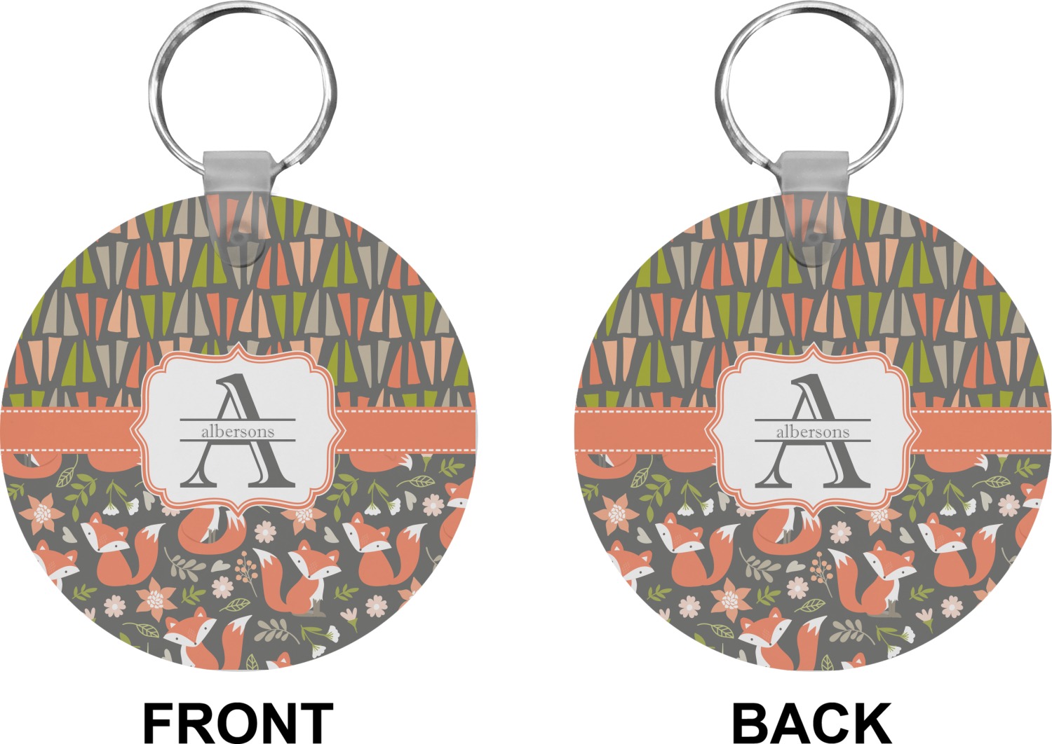 Our personalized keychains attach to the included metal, split key ring with a plastic, removable snap. Since a metal ring is included with your purchase, you have the liberty to keep your keys together on the ring, with or without your unique keychain. We offer this keychain in three different shapes: circle, heart, or diamond. We print your personalized design(s) on both sides of the key chain, and the surface has a glossy, reflective finish that only emphasizes your design. Each keychain is approximately 2.25 by 2.25 inches.