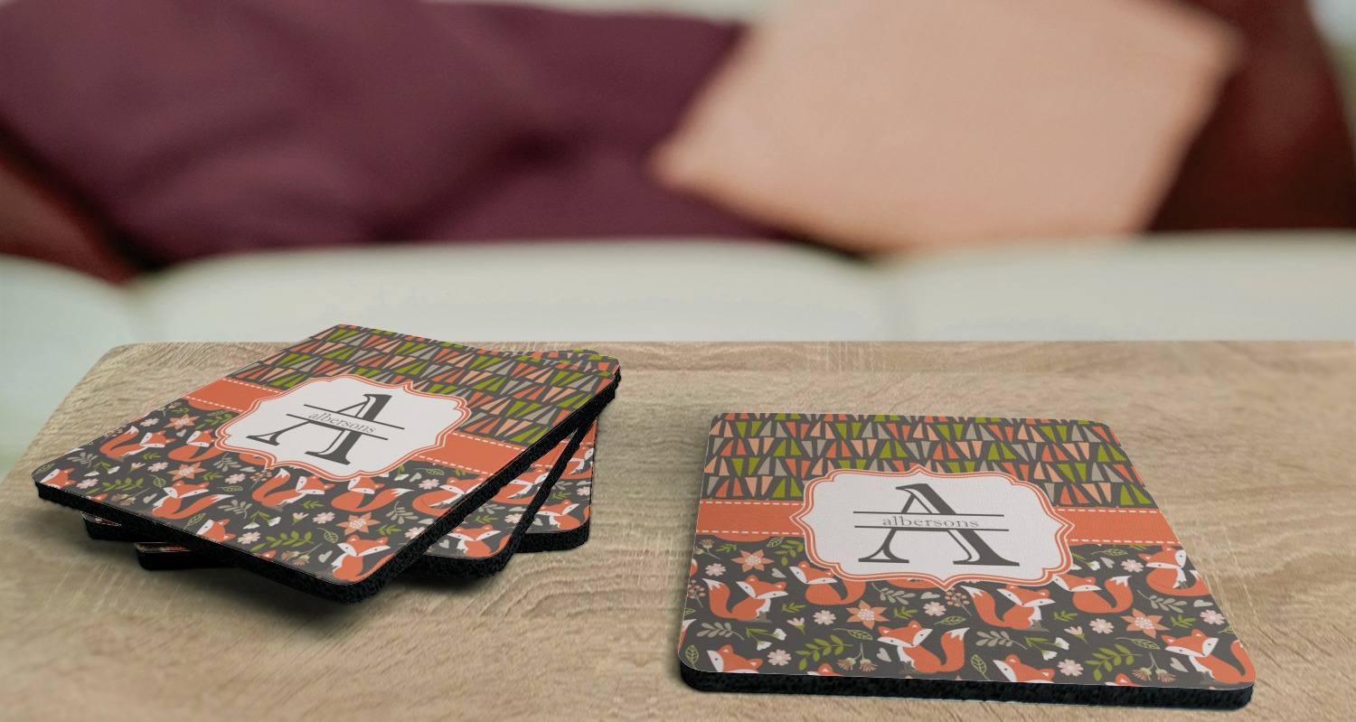 Replace your boring, run-of-the-mill coasters with a set of 4 personalized coasters! When personalized, these coasters will protect your beloved surfaces while adding to your home's decor! Thanks to your coasters bright colors and unique design, your guests will be eager to use them!