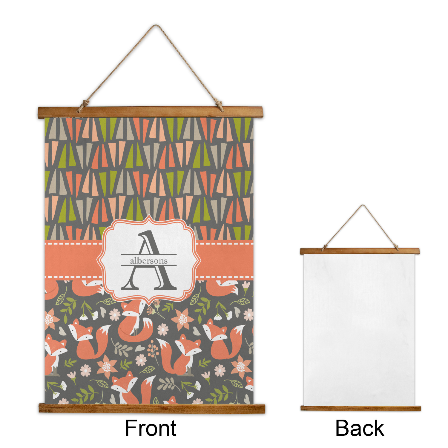 Made in two different orientations - portrait or landscape - both are 26" x 36". Your design is printed on a high quality polyester fabric with hemmed edges. The wood on the top and bottom of the tapestry is 1.25" tall and 0.25" thick and there are two pieces on top and bottom which sandwich the fabric.