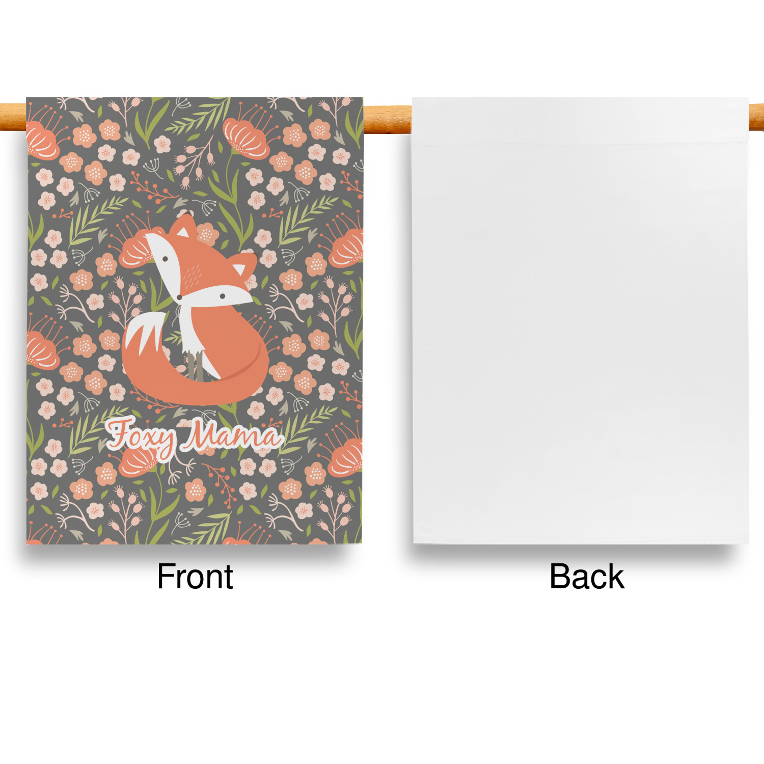 These custom garden flags are made of a durable, double-ply, polyester weave, allowing them to withstand the elements year round. The small flags measure at approximately 12 by 18 inches. The large flags measure out to 28 by 37 inches. You can order these decorative flags with your customization printed on the front only, or the front and back.
