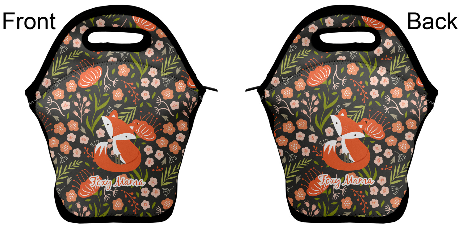 Our personalized lunch bags are made from a strong neoprene, and secure with a zipper closure that lines the top of the bag.The edges of the neoprene are sewn together with a heavy duty stitch, adding to the durability of the bag. The is accompanied by a reinforced handle at its top, for the easy transport of your lunch. We display your personalization across both the front and back of this neoprene lunch bag, while the remaining sides are a sleek black in color. Each bag measures at 13.5 inches tall, and 11.5 inches wide.