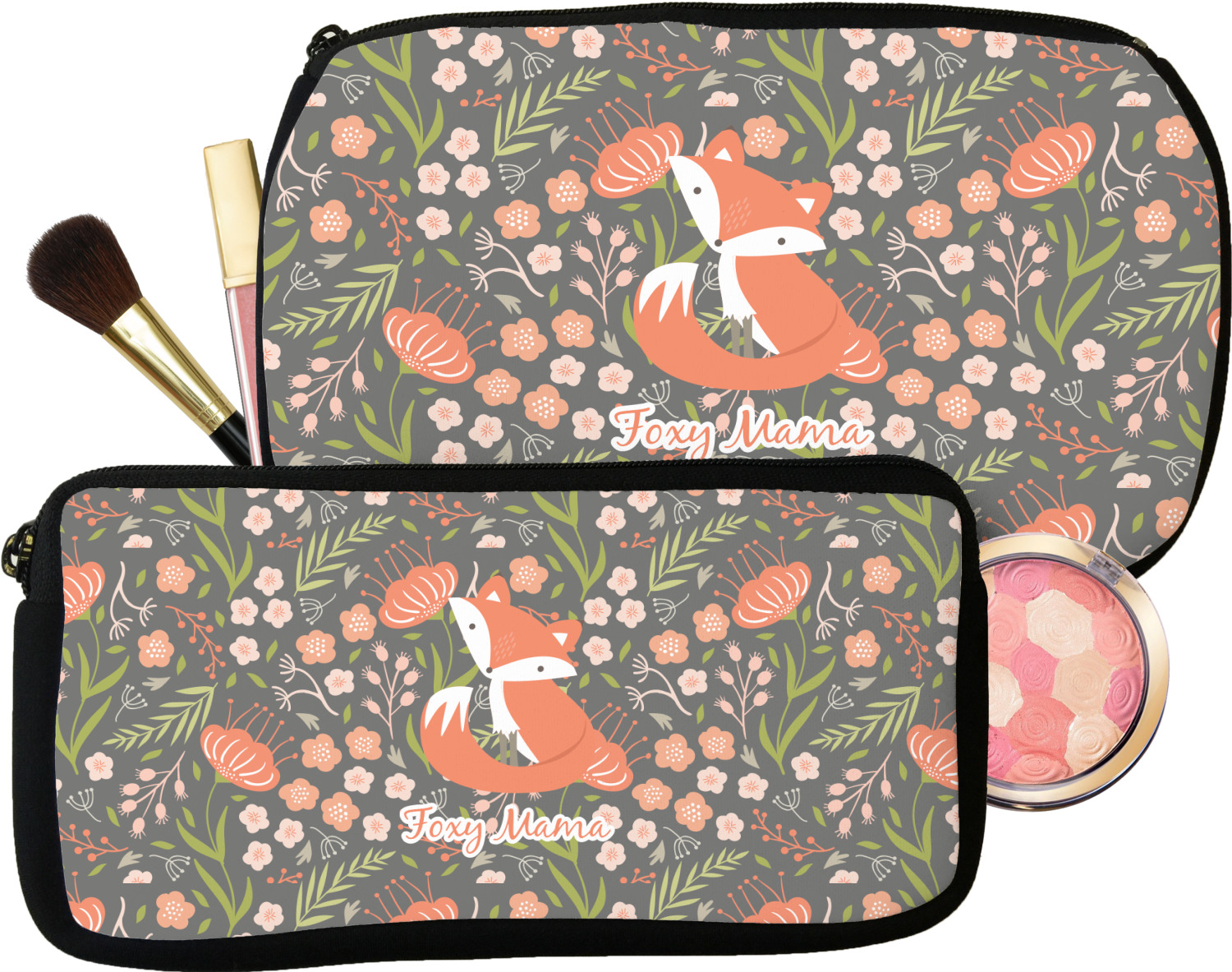 Our personalized makeup bags are available in many different designs, patterns and colors - so you are sure to find one that will love. They are made of neoprene (same material as wet-suits) and thus are water resistant, so spillages in your makeup bag will not end up all over you purse. They are customized on one side and are black on the other side and the zipper is black as well.