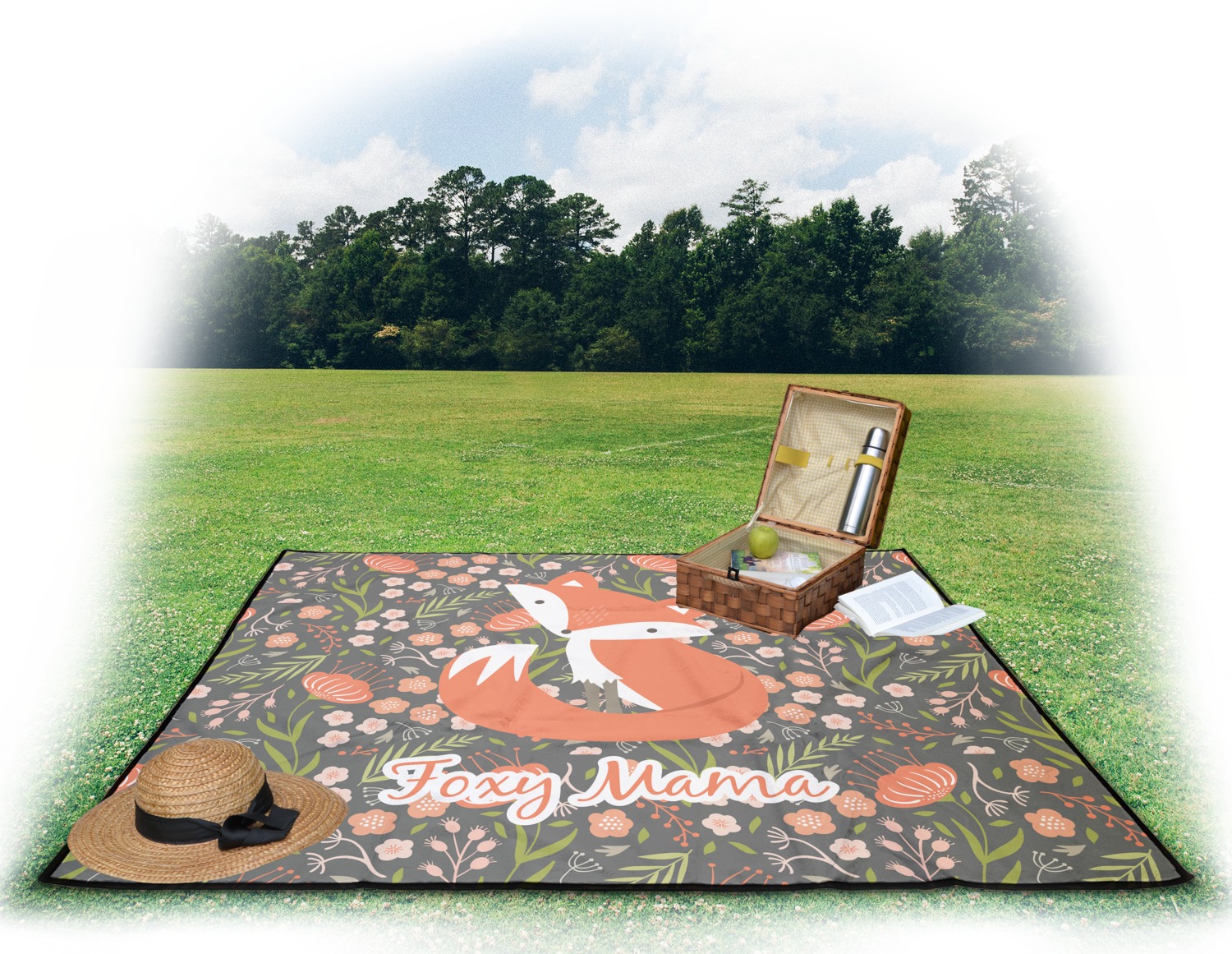 This picnic blanket is perfect for hanging out with your friends at the park or anywhere outside. The top of the blanket is made of a super soft microfiber fleece. The bottom of the blanket is made of a black material similar to a rain jacket and is water repellent as well. This will keep any wet spots on the ground from soaking through your picnic blanket. No one likes a wet blanket. The blanket measures at approximately 50" x 59" and has a nicely finished ribbon edge.