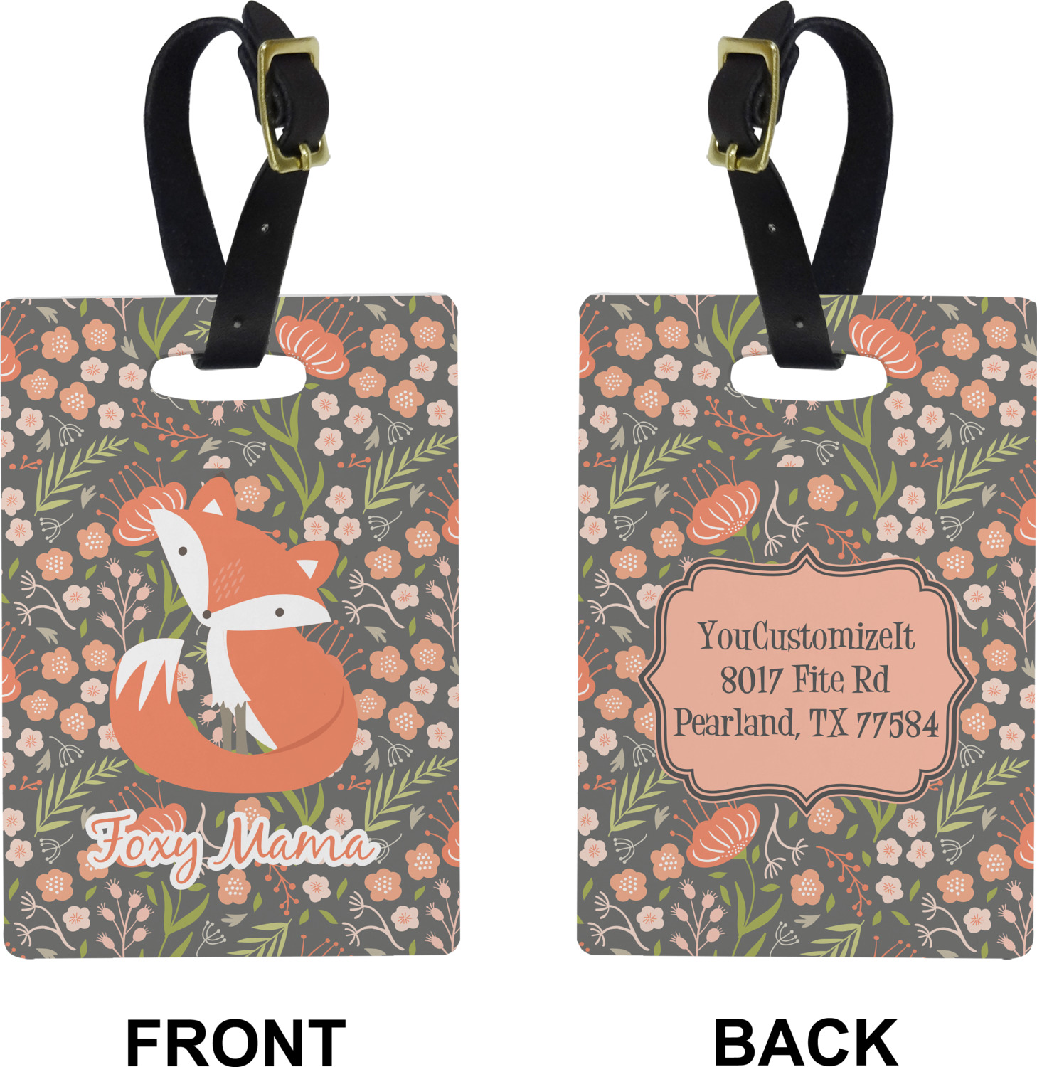 These cute luggage tags are made of a fiber-reinforced, UV-resistant plastic, making them waterproof and durable enough for both everyday use and the rugged adventures of any traveler! A leather strap with holes and a buckle is included with your purchase and can be used to attach your custom luggage tag to any suitcase, backpack, or duffel bag. You can design these travel tags as you wish; your customization will be displayed across the front, while the back will show as little or as much personal information as you want.