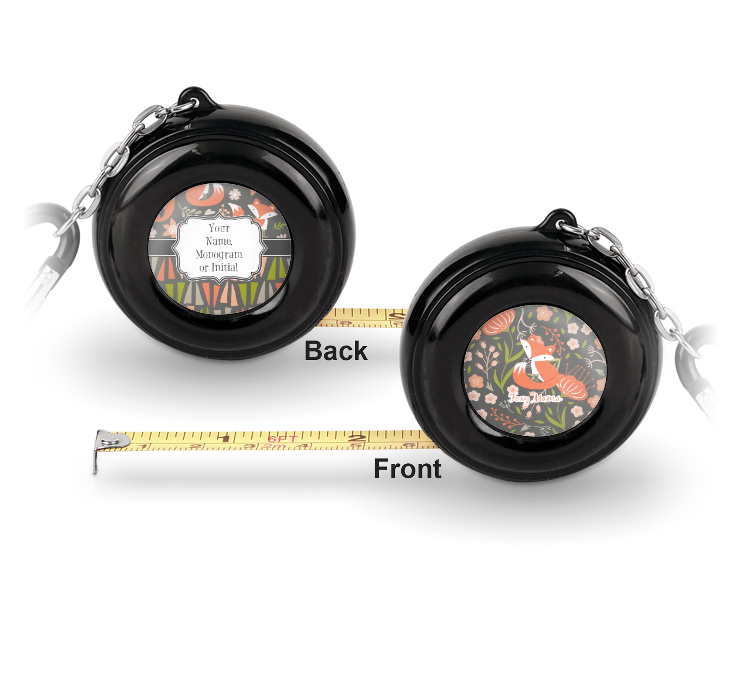 Now for personalizing! You get to personalize both sides of your tape measure. Have fun picking a cute pattern, font, or graphic! Make your personality shine through this fun tool.