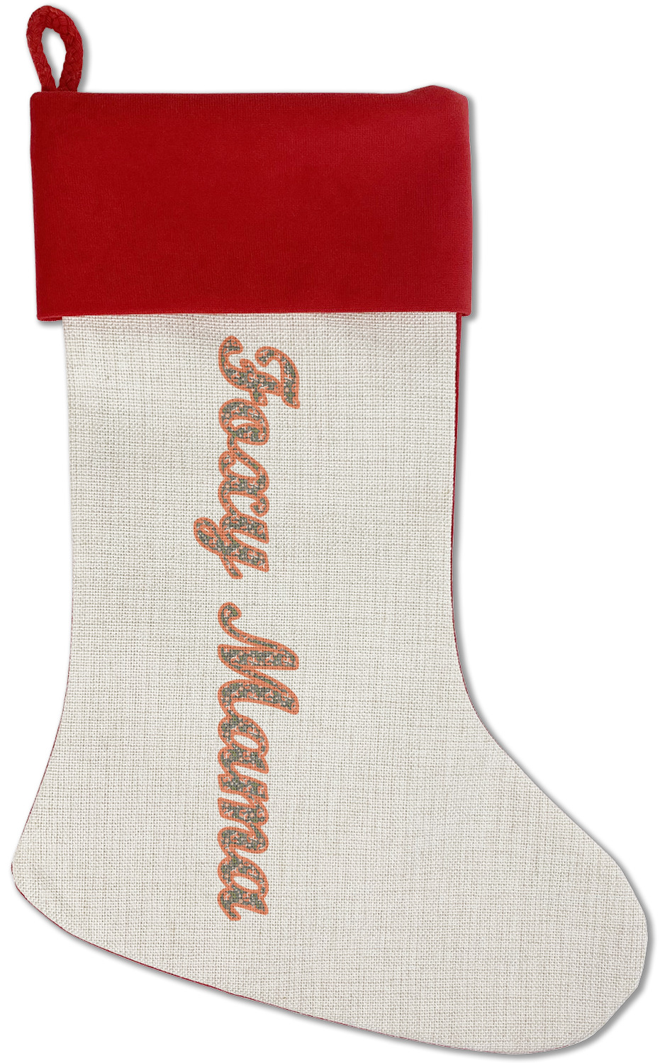 Our classic red stockings are made from a soft, yet durable polyester material perfect for any stocking stuffer! The front of our Christmas stockings have a linen front that boldly displays your custom design accented with a lush red cuff resting all around the stocking. Each stocking is approximately 18x12 with a durable cotton rope loop for hanging.