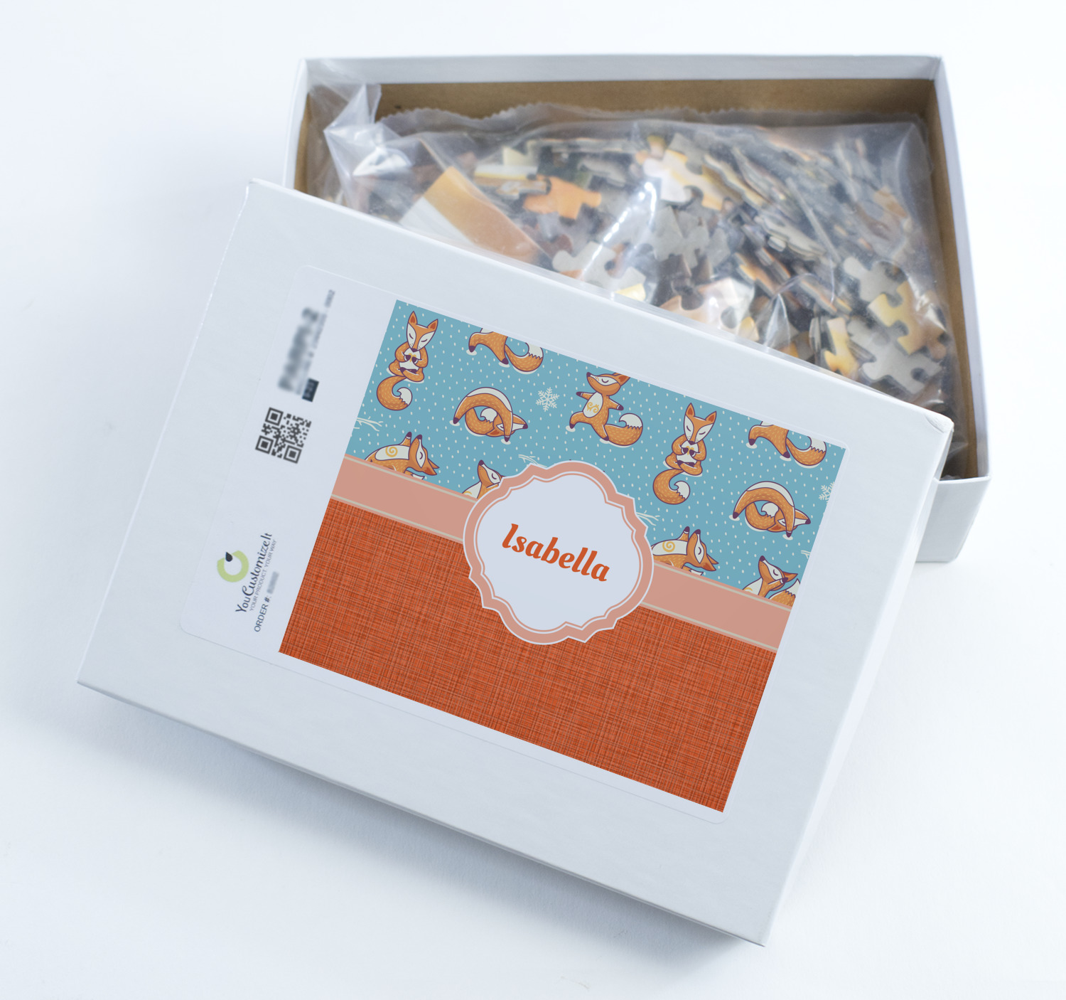 We print our puzzles on thick white chipboard in vibrant colors, then laminate the chipboard and die cut your puzzle. Your jigsaw puzzle is shipped to you in a box with the image of the puzzle on the box.