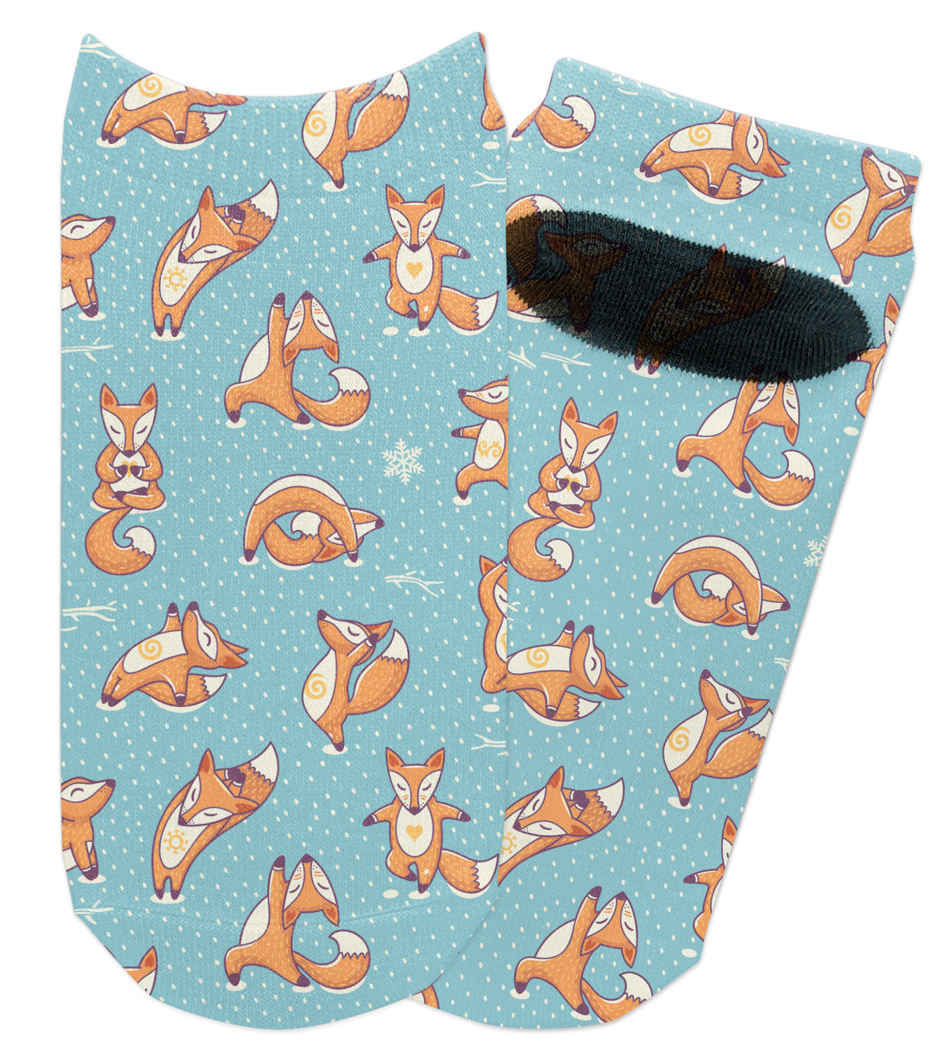 With the bright orange and contrasting blue, you're bound to turn heads. Each fox is doing a specific yoga position from the tree pose to the cobra pose. There is nothing this fox can't do!