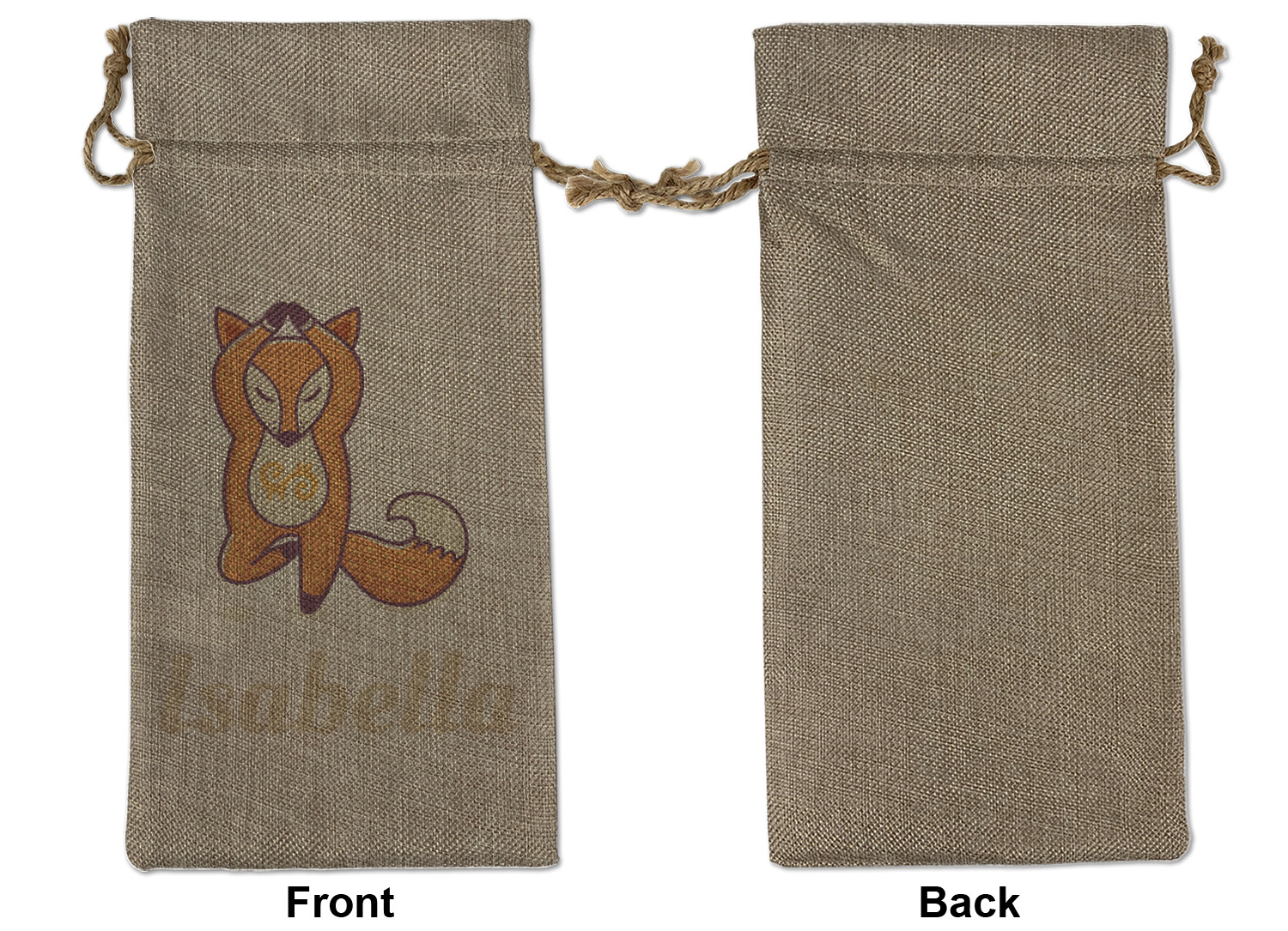 We sell our Burlap Gift Bags in 3 variant sized bags. Made with burlap polyester, each personalized bag can be secured with a twine drawstring pull. Your custom design is available to print on one side or both sides - completely up to you! The sizes of the bags measure approximately 4.5" x 6.5" for the smallest size, 6.5" x 8.0" for the medium size, and 6.5" x 13.5" for the large-sized bag.