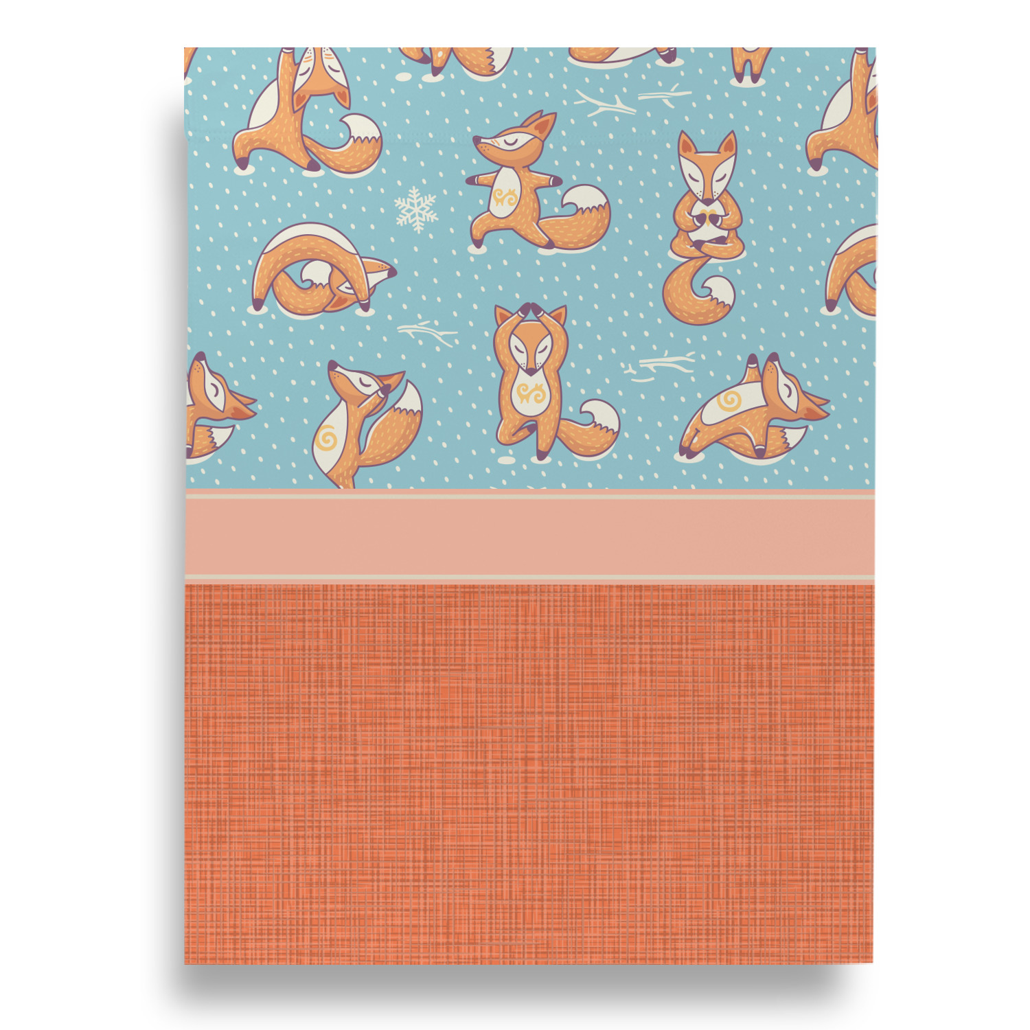 With the bright orange and contrasting blue, you're bound to turn heads. Each fox is doing a specific yoga position from the tree pose to the cobra pose. There is nothing this fox can't do!