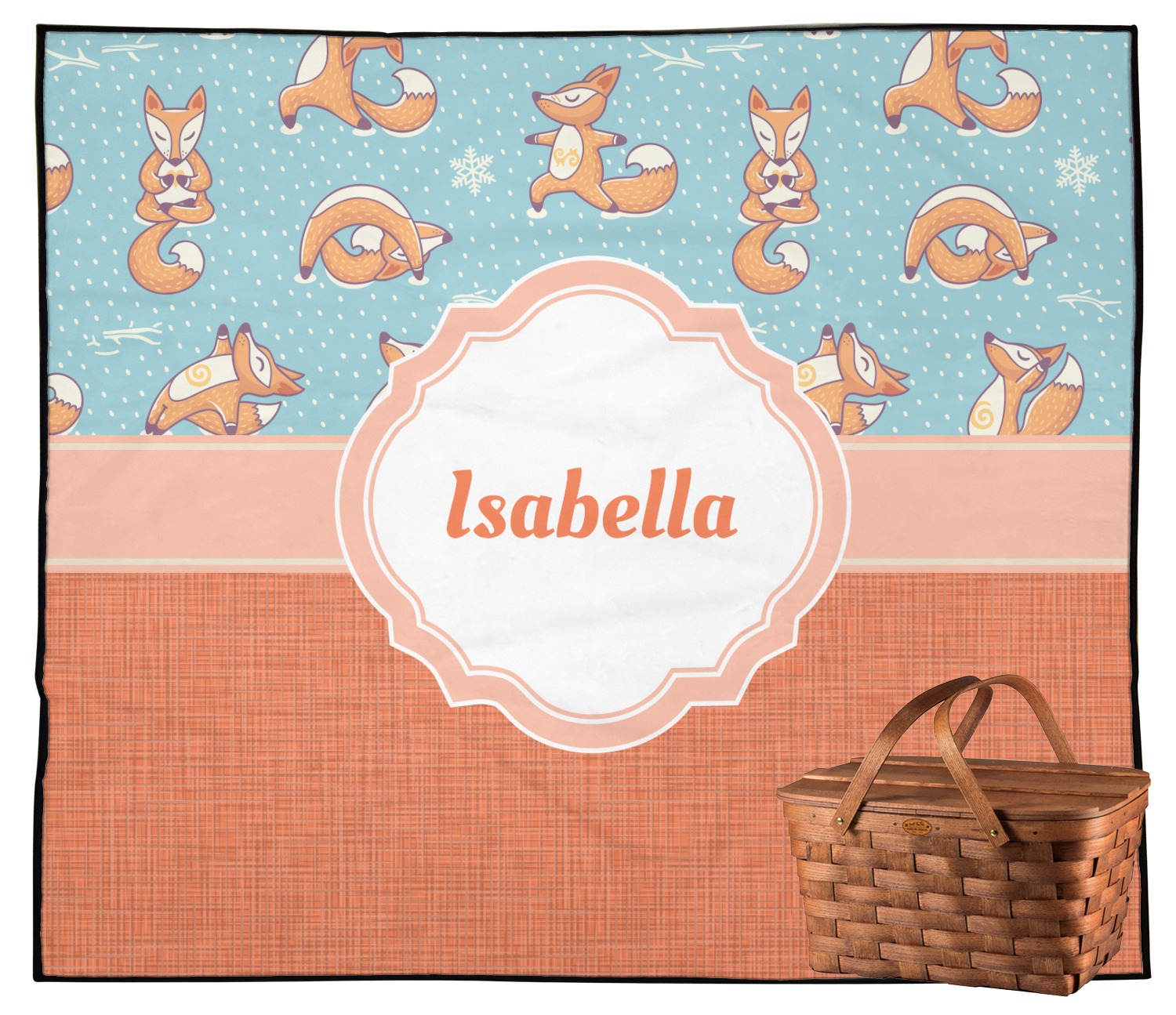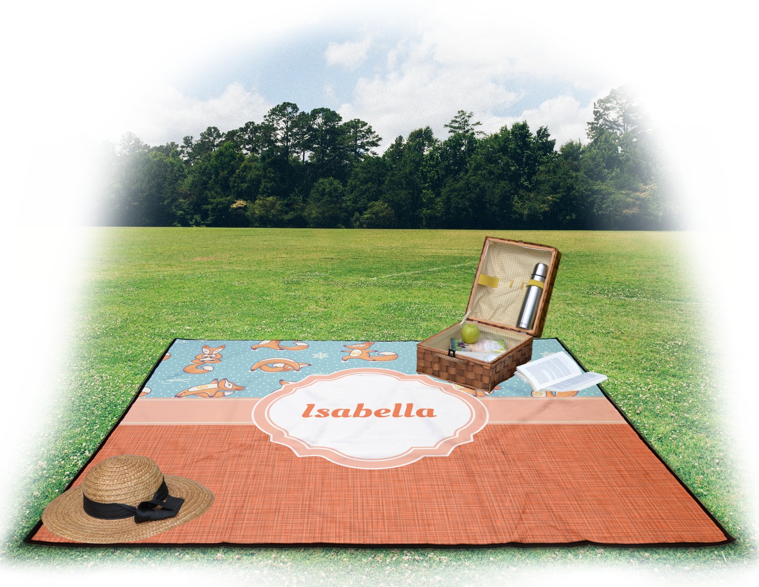 This picnic blanket is perfect for hanging out with your friends at the park or anywhere outside. The top of the blanket is made of a super soft microfiber fleece. The bottom of the blanket is made of a black material similar to a rain jacket and is water repellent as well. This will keep any wet spots on the ground from soaking through your picnic blanket. No one likes a wet blanket. The blanket measures at approximately 50" x 59" and has a nicely finished ribbon edge.