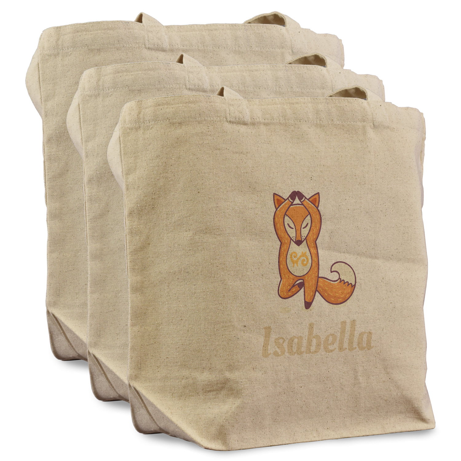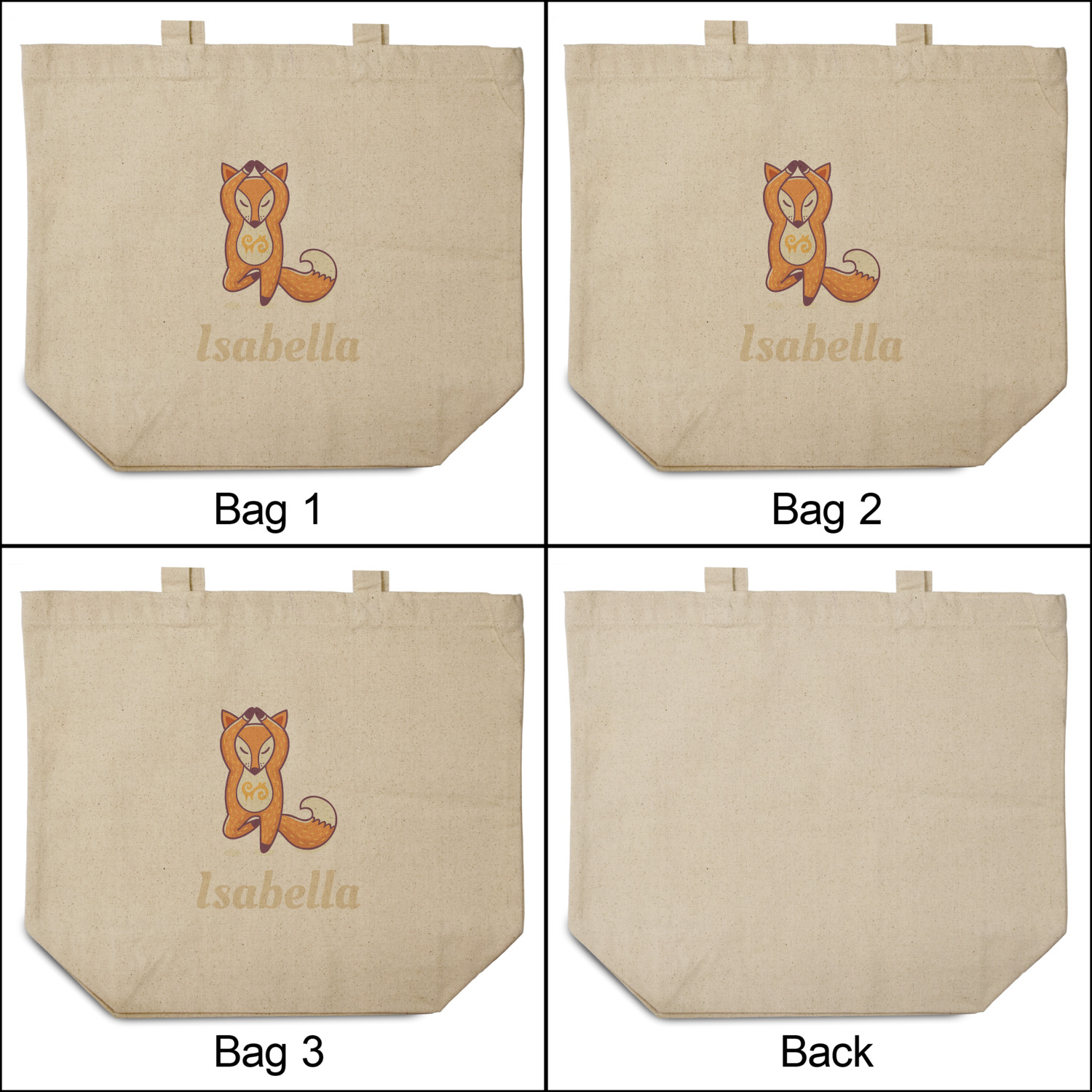 These cotton totes are washable and easy to care for, and they can be folded flat for storage. Your artwork, logo, or photo is printed in full color directly on the cotton tote in the front.